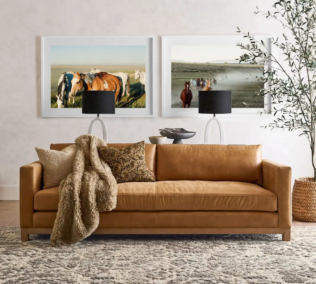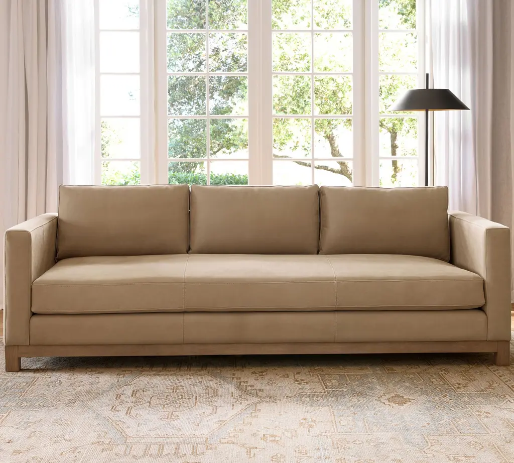Jake Leather Seadrift Wood Base Sofa (63"–120")
