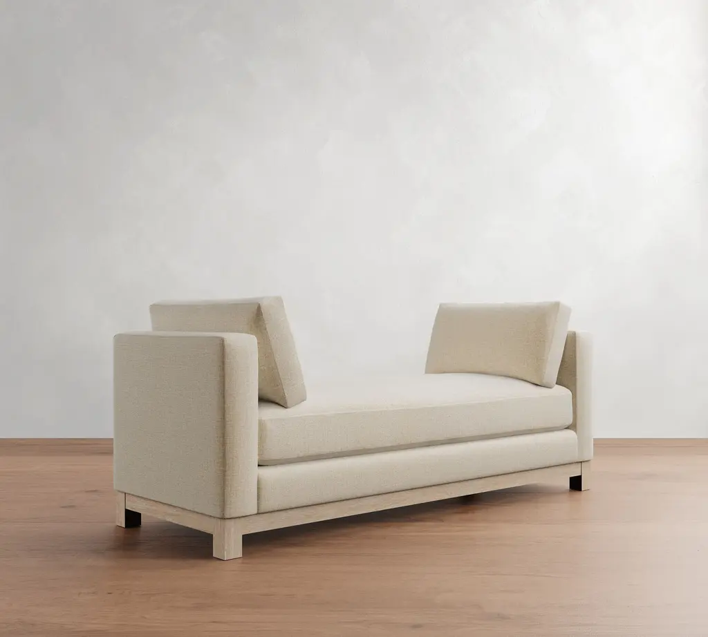 Superb comfort meets a simplified silhouette for a look that’s as refined as it is laid back. Our Jake Collection is defined by its legs – the wood base adds grounding texture and a relaxed feel. This settee can be used as a daybed or casual lounge spot for a bedroom, foyer, or living room.
