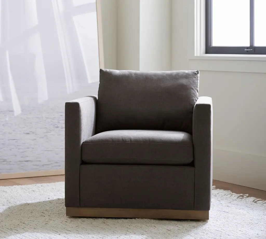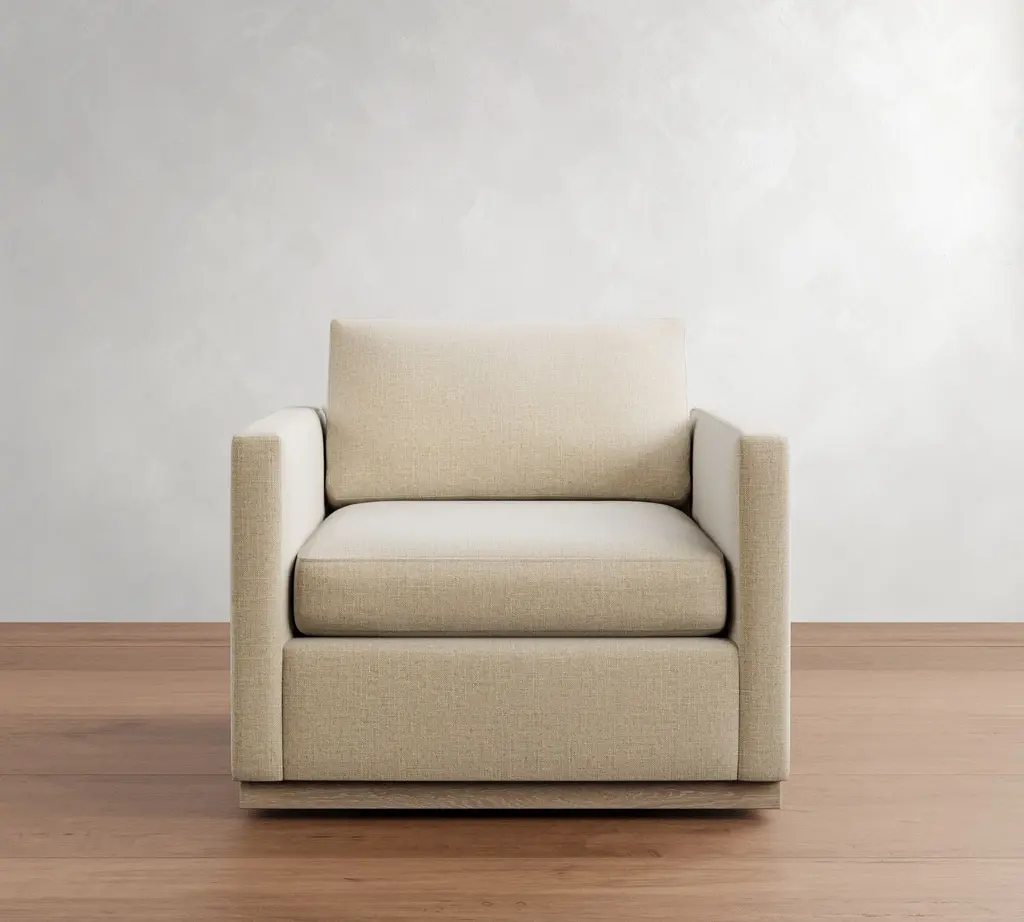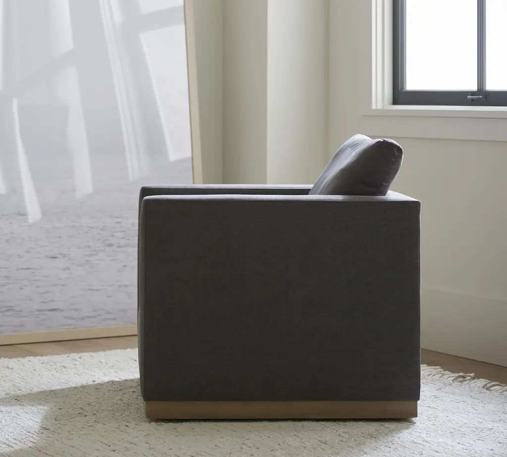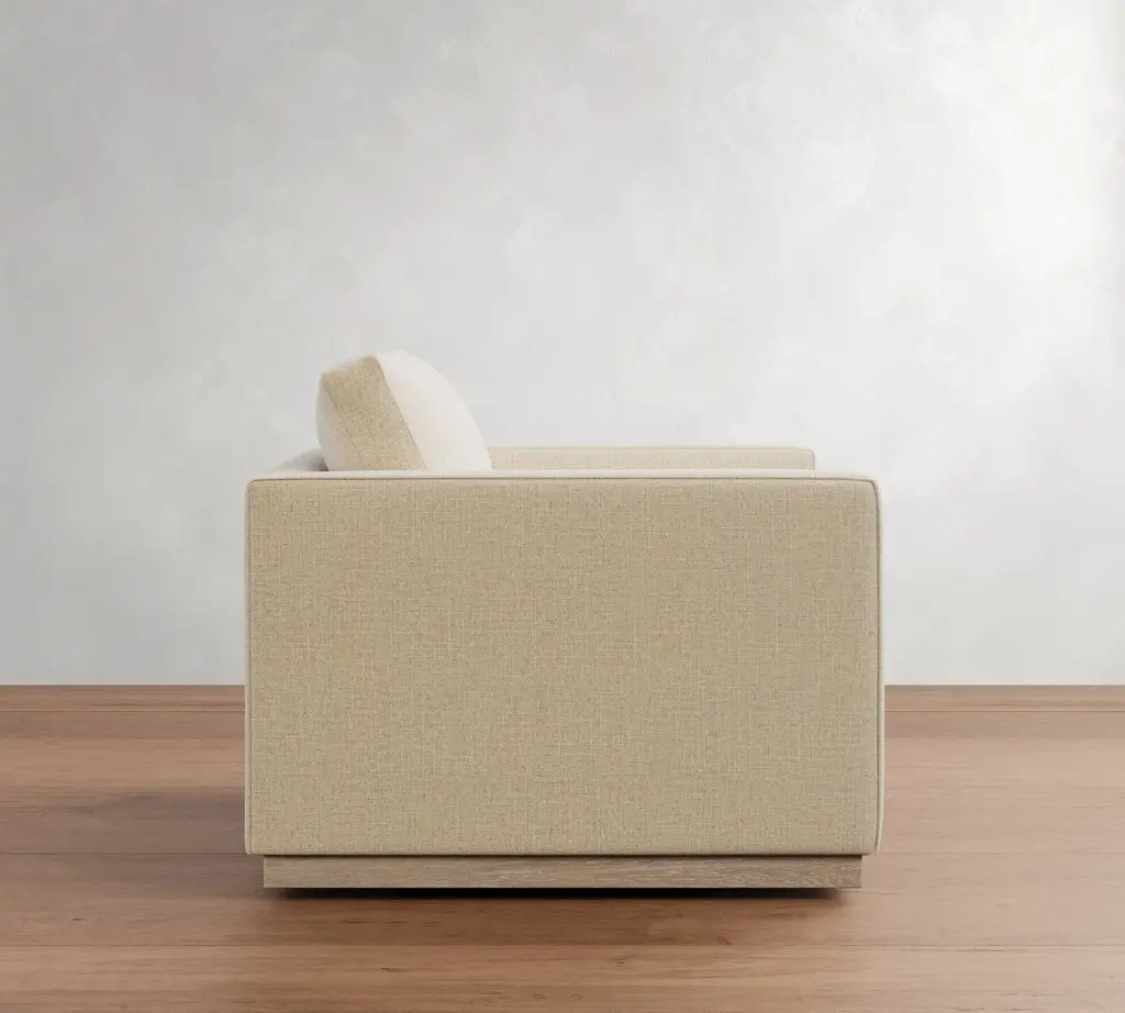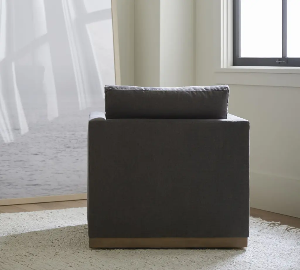 Superb comfort meets a simplified silhouette for a look that's as refined as it is laid back. The wood base adds a relaxed feel to the clean-lined profile.