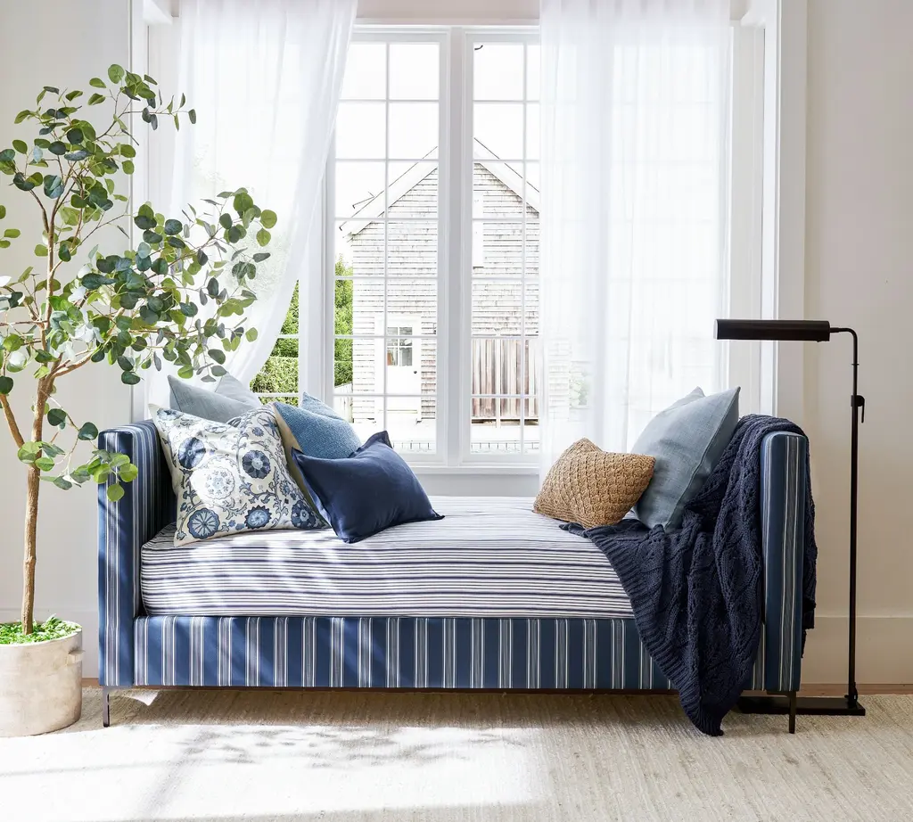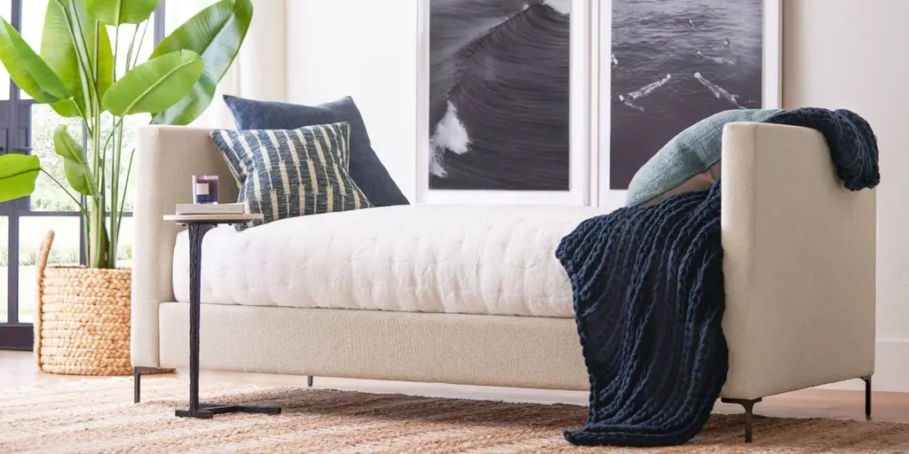 Superb comfort meets a simplified silhouette for a collection that’s as refined as it is laid-back. We updated a classic with modern lines and the striking but barely-there profile of L-shaped, metal legs. The daybed is versatile, letting you elevate the look and lounge-worthiness of your bedroom, guest room, or even home office. All you need to do is complete the look with your favorite fabric.