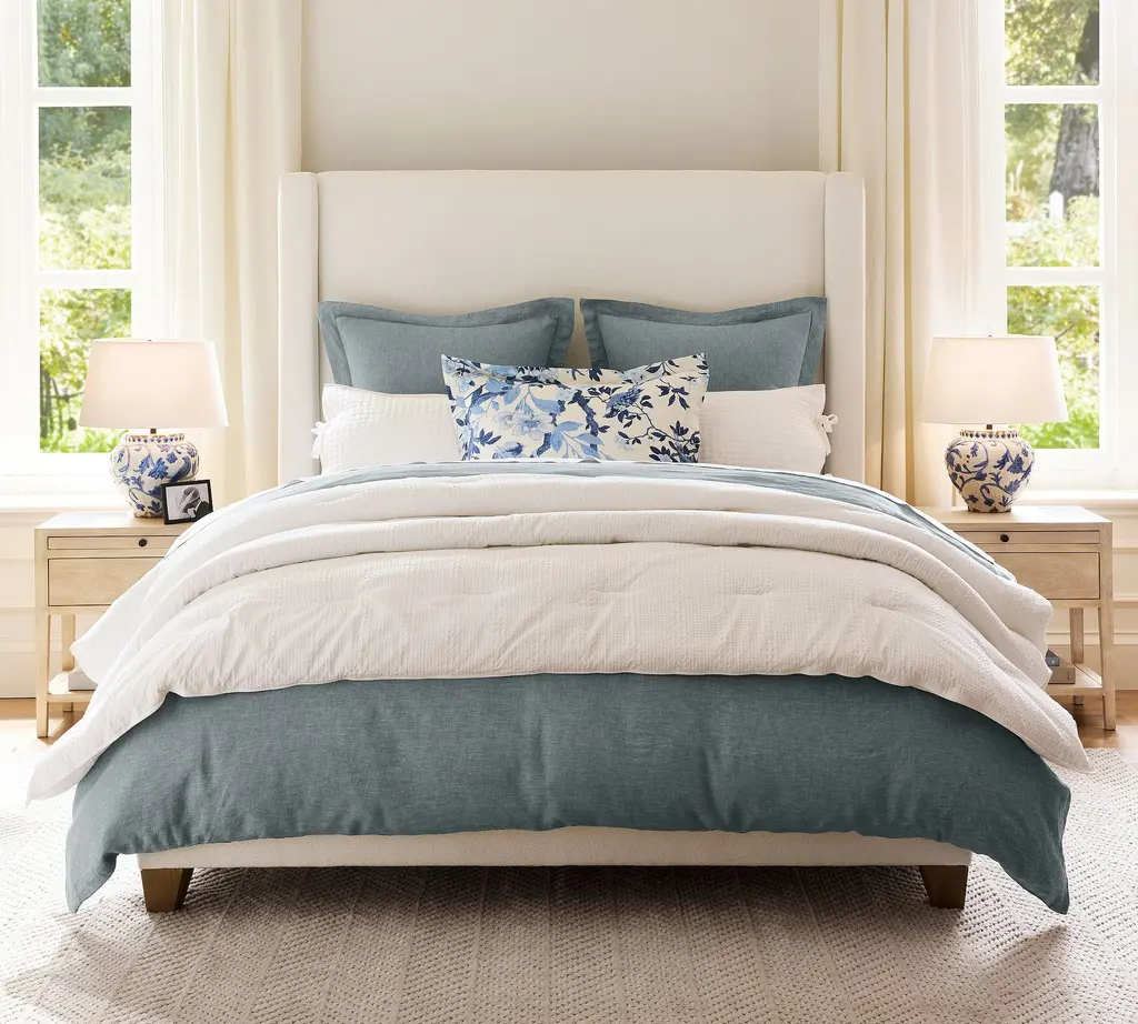 Superb comfort meets a simplified silhouette for a look that’s as refined as it is laid back. Our Jake Collection is defined by its legs – we updated the classic shelter bed with modern lines and the grounding texture of wood. Finish it off with one of our favorite fabrics and take your sleep to the next level.
