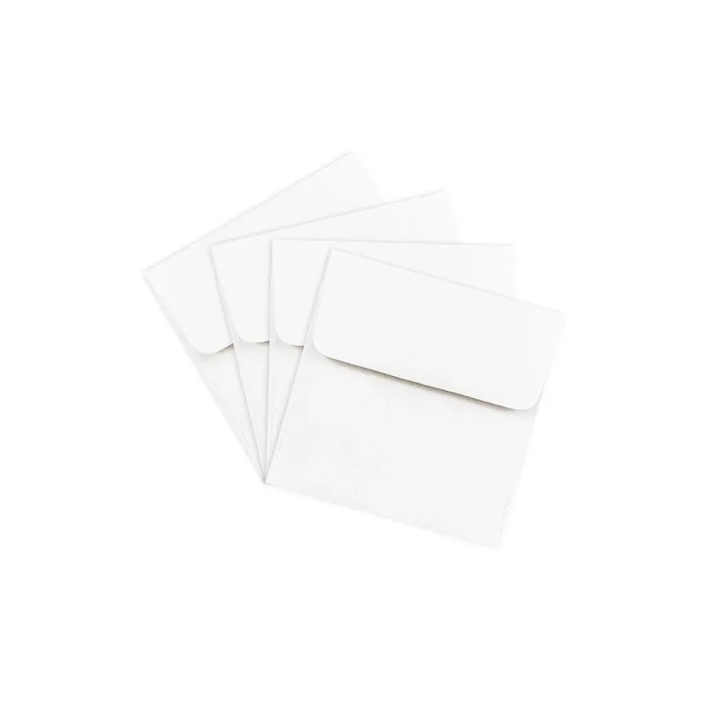 JAM Paper Square envelope of dimension 4.5" x 4.5" in white color with peel and seal closure is perfect for greeting cards, invitations, weddings or any announcement. JAM Paper Square envelope in a pack of 25 has dimension of 4.5" x 4.5" is white in color with peel and seal closure. Envelope comes in a range of sizes for personal use, business style envelopes, large clasp and booklet envelopes. Size: 4 1/2" x 4 1/2". Closure: Gum. Opening: Square. Material: Paper. Finish: Smooth. Envelope type: Business. Paper weight: 28 lbs. 25 envelopes per pack. Sold as 25/Pack.