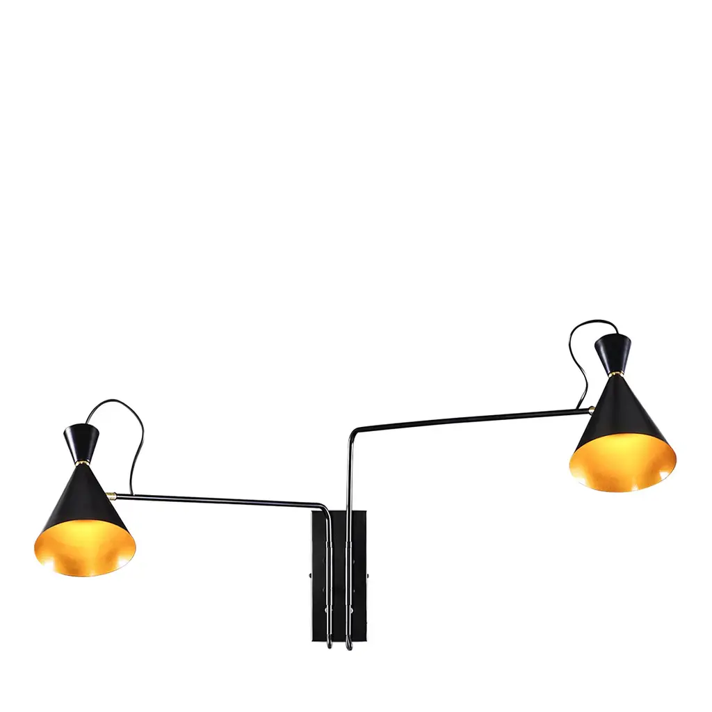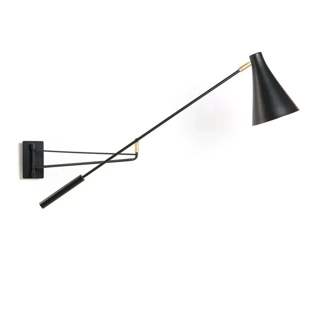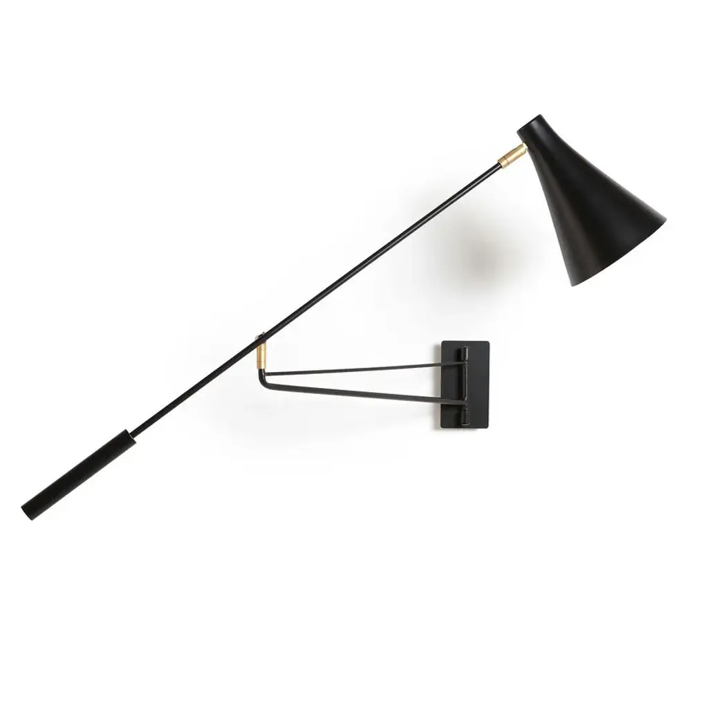 The Jameson articulated wall light is denoted by the elegance of a black metal elbow, punctuated by painted brass details. Lightweight, the luminous part is perfectly balanced on the structure. The articulated arm allows the light to be directed with great ease and precision.In matt black metal and aged brass detailsAdjustable lampshadeArticulated armCompatible with energy class A bulbs.E14 lamp holder for 9W max. energy saving bulb (not included).