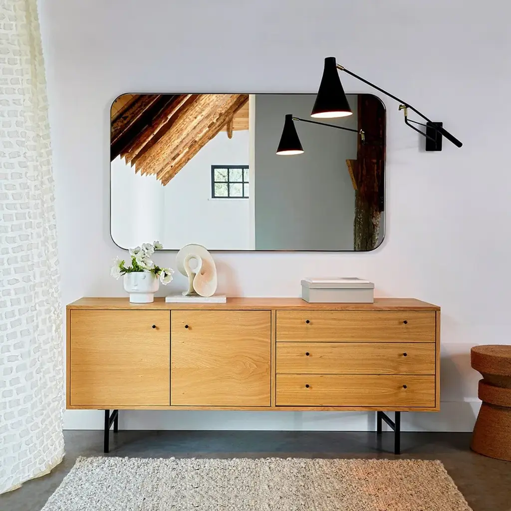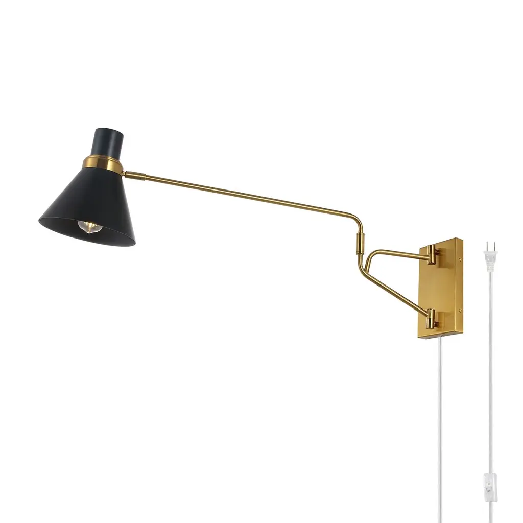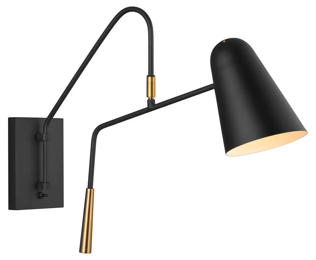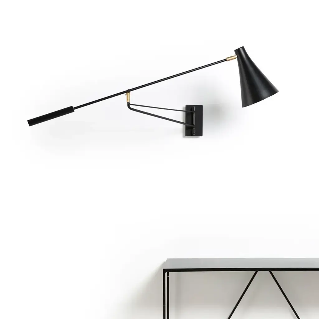 The Jameson articulated wall light is denoted by the elegance of a black metal elbow, punctuated by painted brass details. Lightweight, the luminous part is perfectly balanced on the structure. The articulated arm allows the light to be directed with great ease and precision.In matt black metal and aged brass detailsAdjustable lampshadeArticulated armCompatible with energy class A bulbs.E14 lamp holder for 9W max. energy saving bulb (not included).