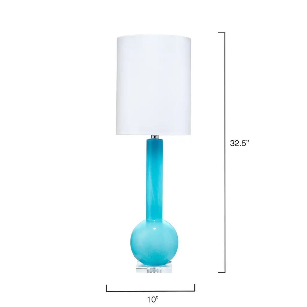 Jamie Young Studio Glass Table Lamp With Tall Thin Drum Shade - Blue