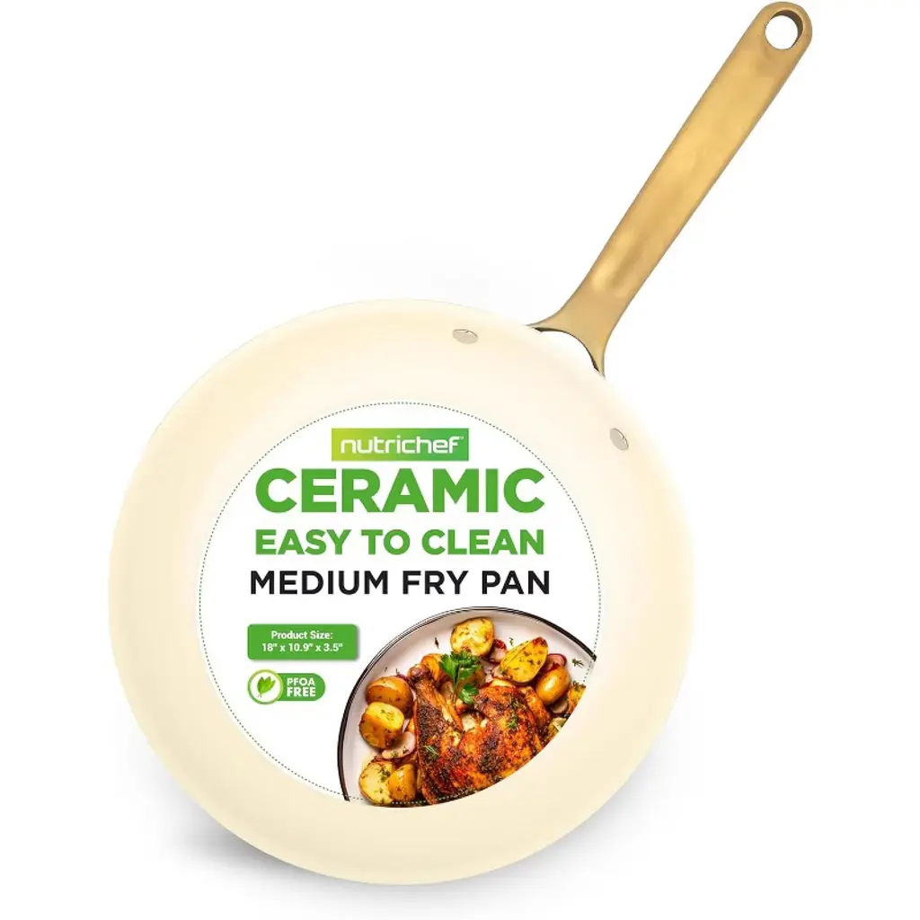 The ceramic coated aluminum 4 quart nonstick deep fryer with handle is constructed of quality materials for exceptional performance and includes: 4.5 qt Dutch oven style pot, glass lid and a stainless steel fryer basket. The sauce pan is made of heavy-gauge aluminum, featuring a durable ceramic enamel exterior and interior that is resistant to chips and scratches. Its high-performance nonstick surface provides effortless cooking and cleaning, while the durable cool touch handles are ergonomically designed for comfort, and riveted for added stability. The 4.5 pot serves a dual purpose, as it can be used as a deep fryer or as a Dutch oven for boiling vegetables, soups and sauces. The lid is ideal for high temperatures, and helps to shield from spattering, while the stainless steel fryer basket helps to lift and drain excess oil from food. This multi-functional deep fryer is ideal for producing everything from crisp and flavorful fried recipes to savory soups and sauces.