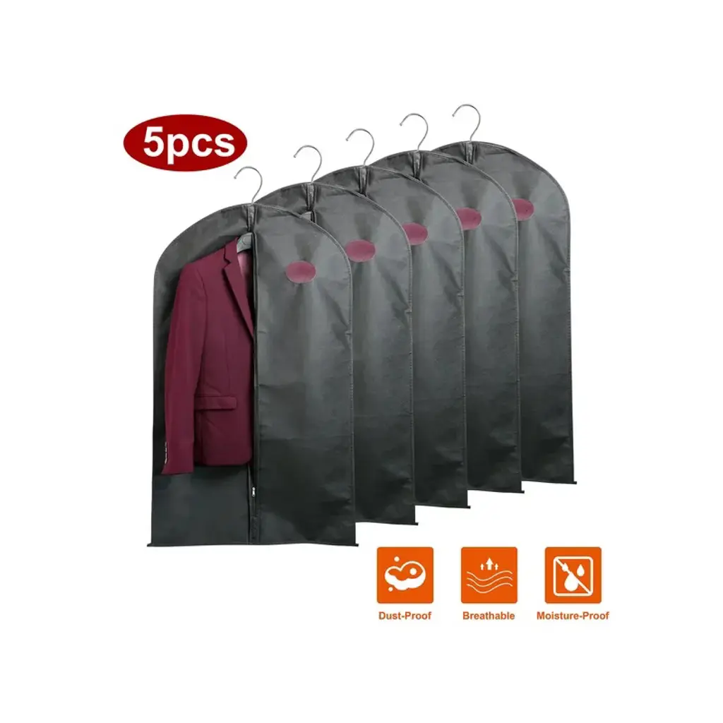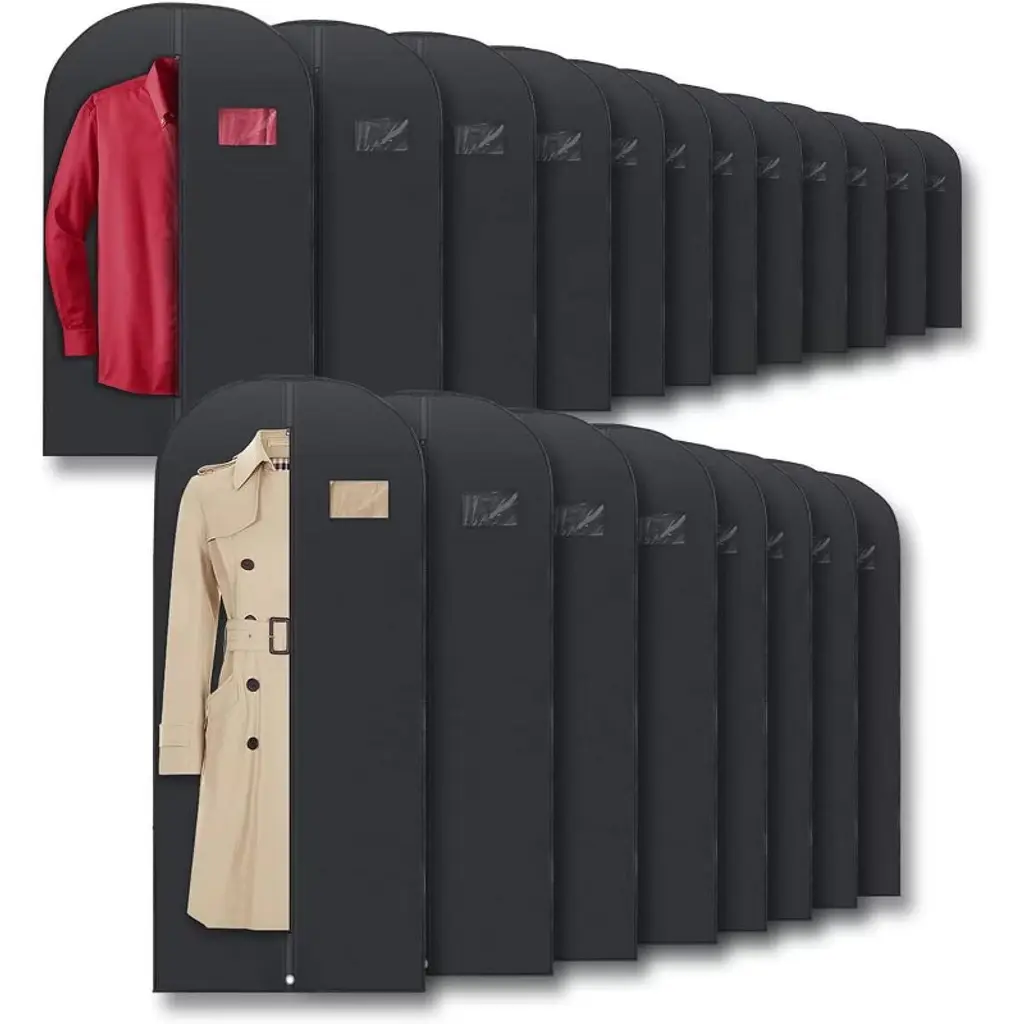Keep your valuable garments clean and protected with these versatile garment bags from J&V TEXTILES. This practical set of 6 bags comes in classic black and beige colors, perfect for organizing your closet or protecting clothes during travel. Each bag features a convenient clear window that lets you easily identify contents without opening. The full-length zipper provides quick access while keeping dust and debris away from your suits, dresses, and other hanging clothes. These washable garment bags are designed for long-term storage and frequent use, making them ideal for both home closets and travel needs. The durable construction helps shield your clothing from dust, moths, and everyday wear while maintaining proper airflow. Whether you're storing seasonal items or protecting formal wear, these garment bags offer reliable protection for your wardrobe investments.