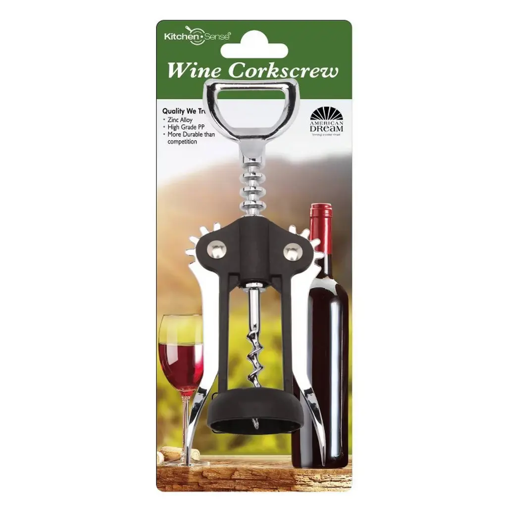 Kitchen Sense Wine Cork Screw is designed to be the perfect workhorse in your home for opening wine and champagne. With the Kitchen Sense Wine Cork Screw, you will never go wrong on that special occasion. The dimension of Kitchen Sense Wine Cork Screw is 2.5 x 6.5 in. This cork screw by Kitchen Sense is lightweight and comes with an ergonomic design. You can easily use this cork screw to open any wine bottle with the comfort of knowing you will get a consistent corking every time. The cork screw of the Kitchen Sense Wine Cork Screw is made from stainless steel and will not rust even when exposed to water over an extended period of time. The cork screw is also built to be very strong and durable providing a long lasting easy to use kitchen solution. Make Kitchen Sense out of your kitchen with American Dream's full line of home goods.