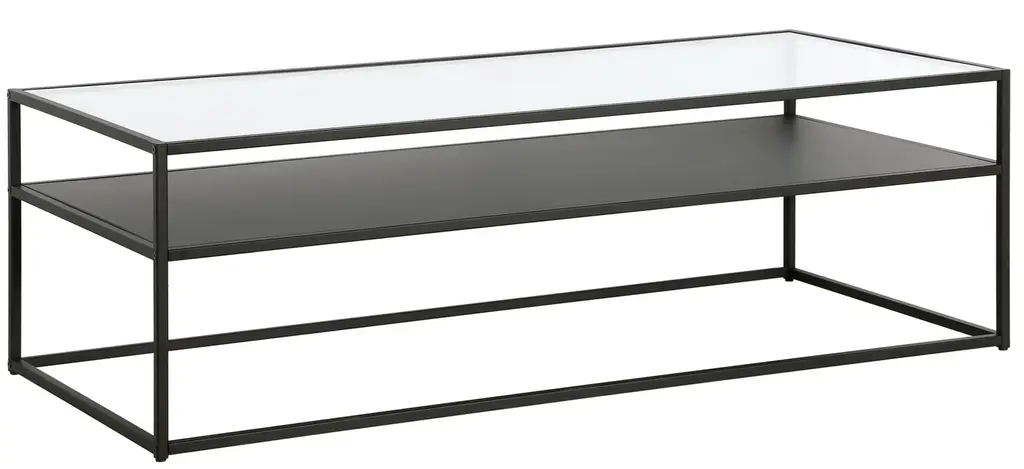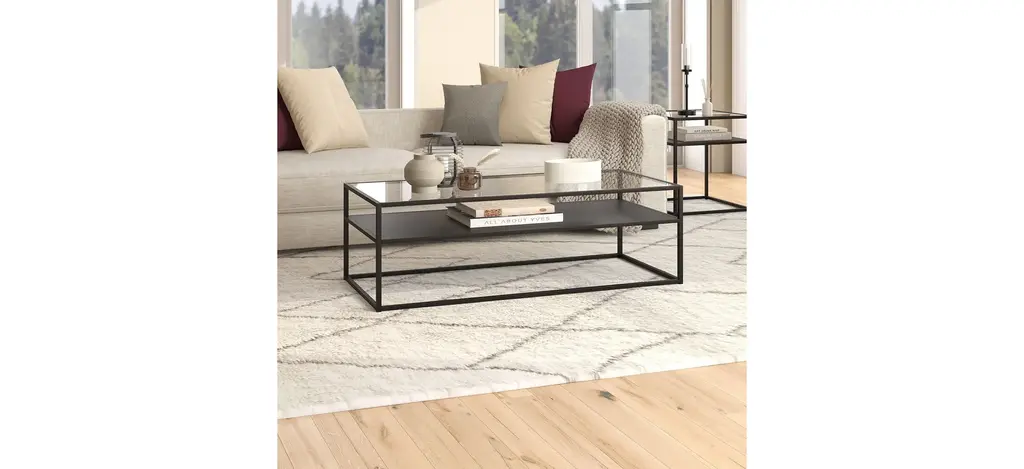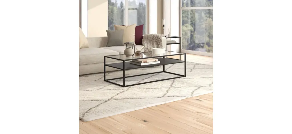 This retro-inspired display-box style Jane coffee table features a seamless blend of function and design. Easy to assemble and easy to style, the tempered glass top, metal shelf and neutral finish make it the perfect addition to your living room or den ensemble.