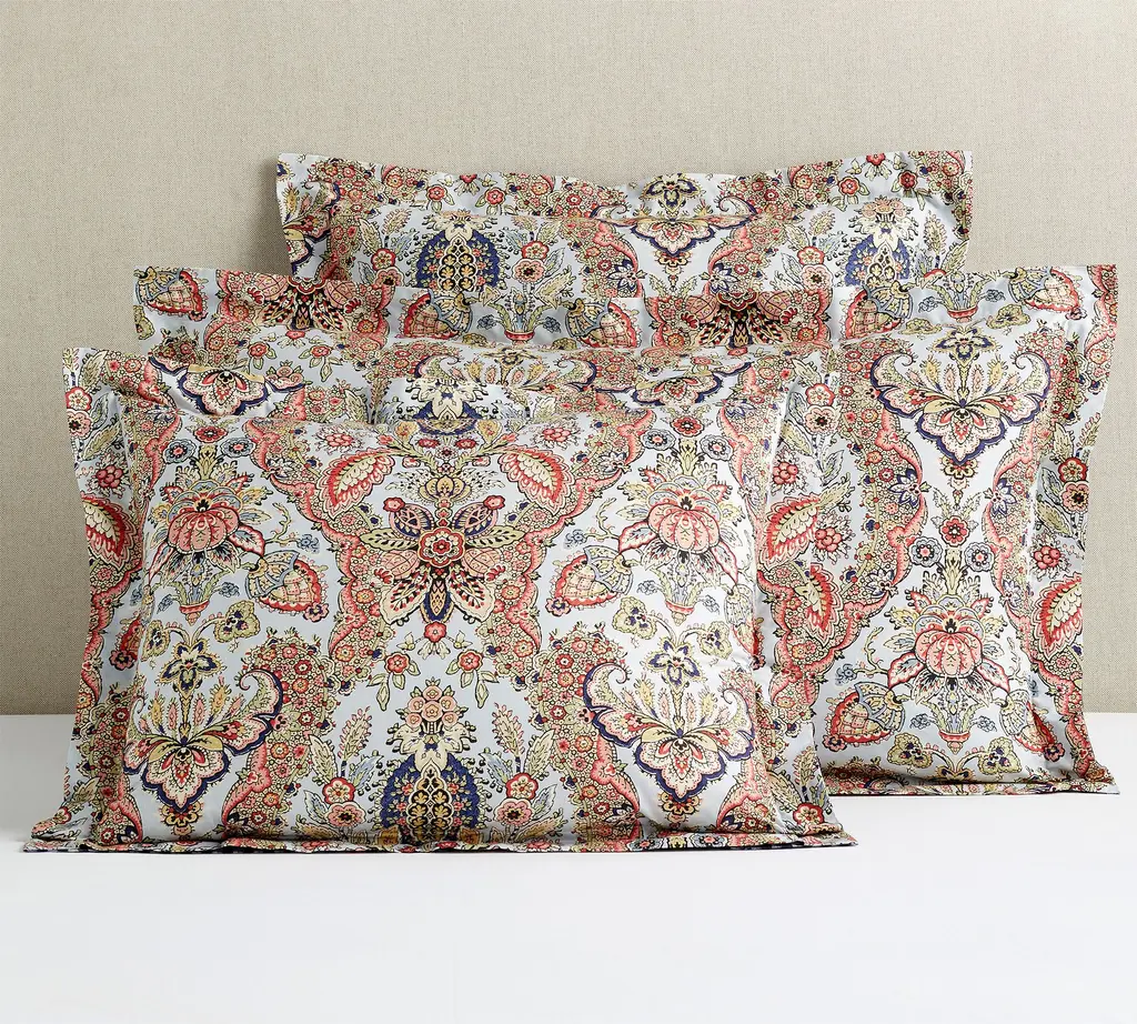 Rooted in block print tradition, this bedding blooms with vibrant florals and rich, saturated colors. The detailed design was originally hand carved on wood, then transferred and printed on cotton. Supremely soft and lightweight, it’s perfect for layering, and the coordinating patterns let you switch up your look with ease.