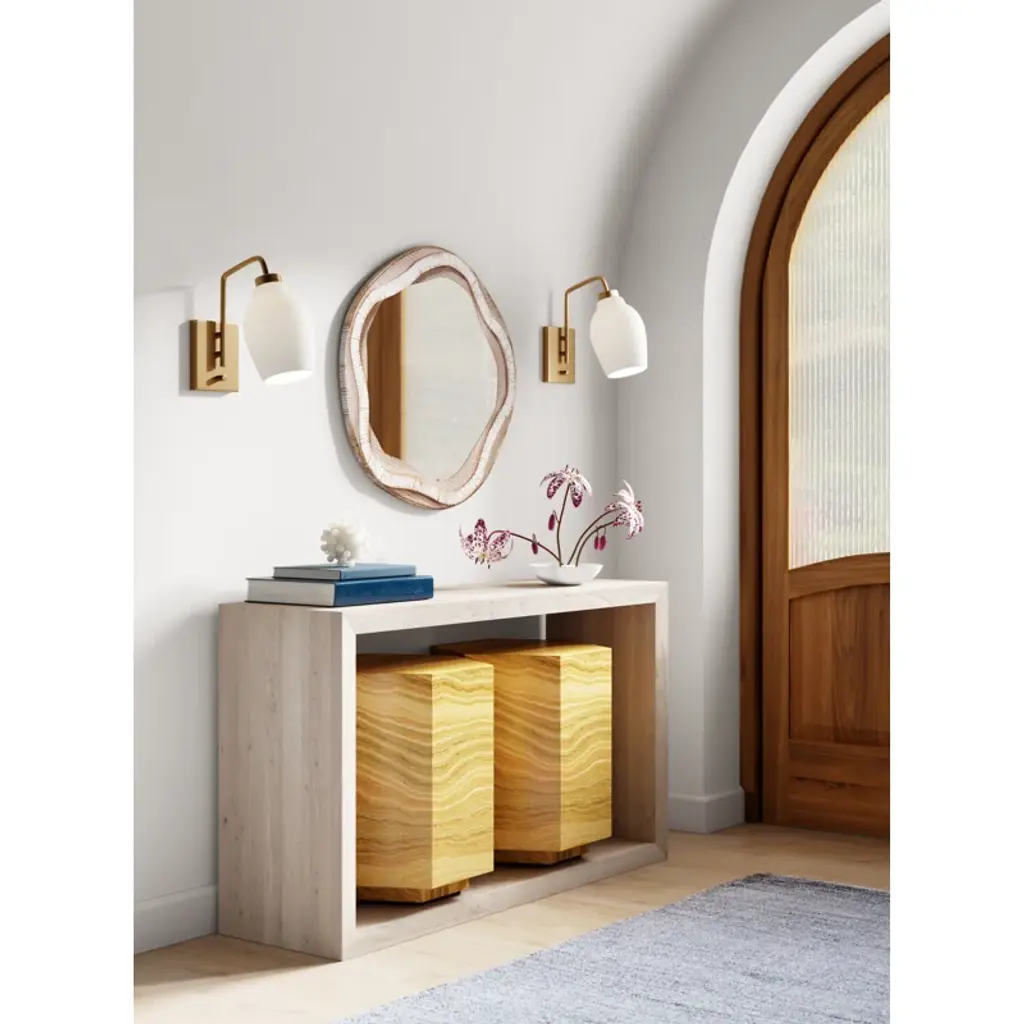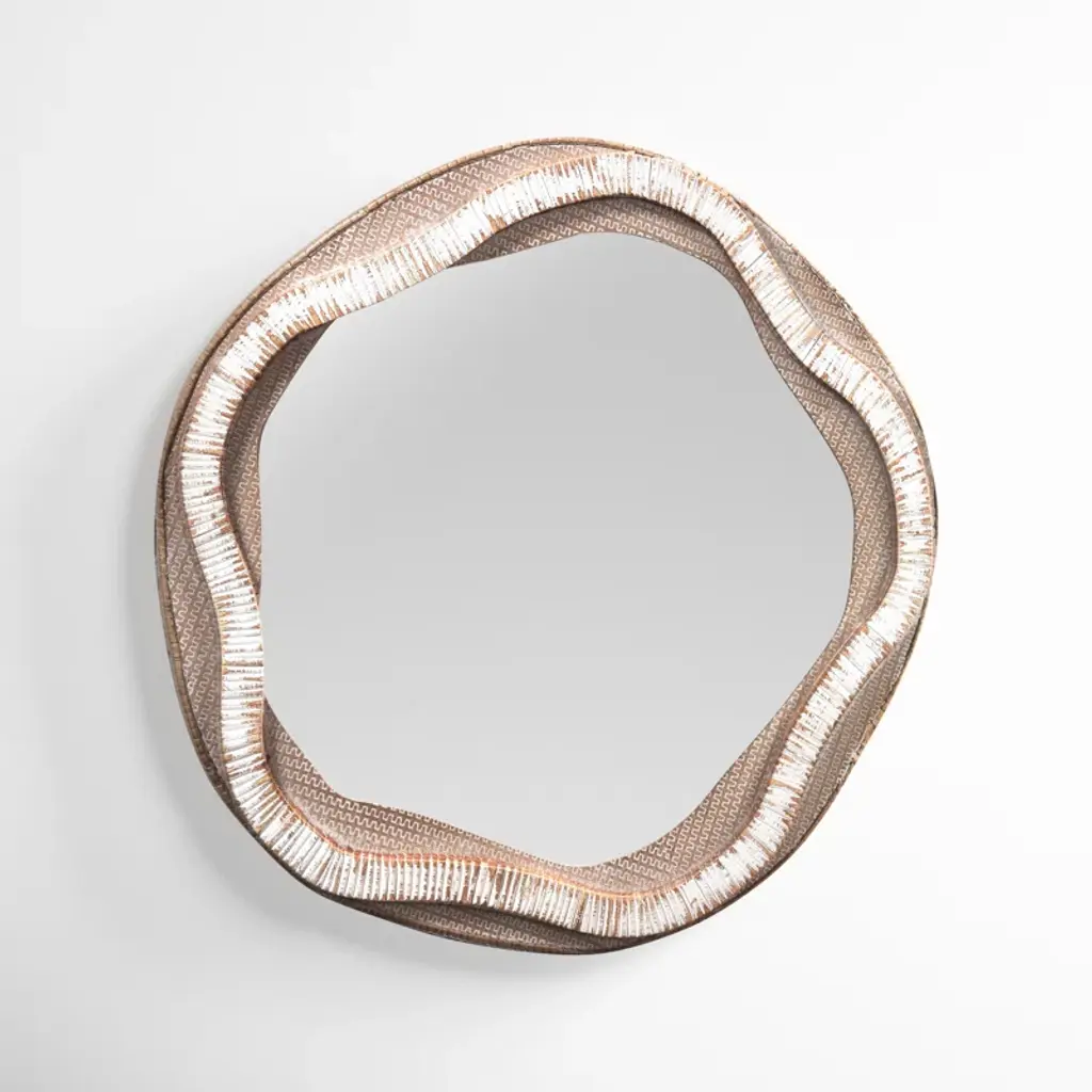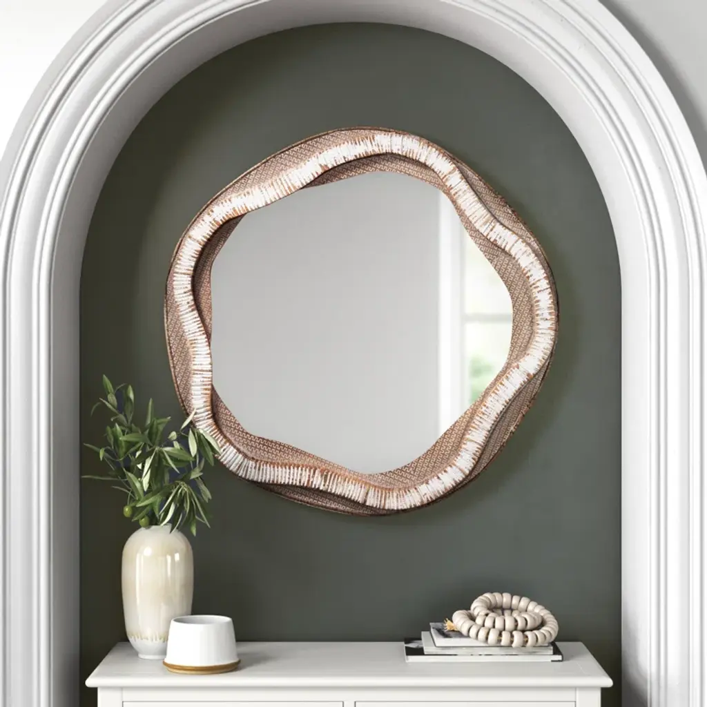 This wall mirror blends organic materials and free-flowing curves for an earthy accent we love. It's handcrafted from wood and rattan, and its textured design adds just the right amount of depth and dimension to your walls. This shatterproof mirror comes with hooks on the back, so it's easy to install above your mantel or on your gallery wall. Pro tip: Hang it above your bedroom dresser or entryway table for one last outfit check as you walk out the door.