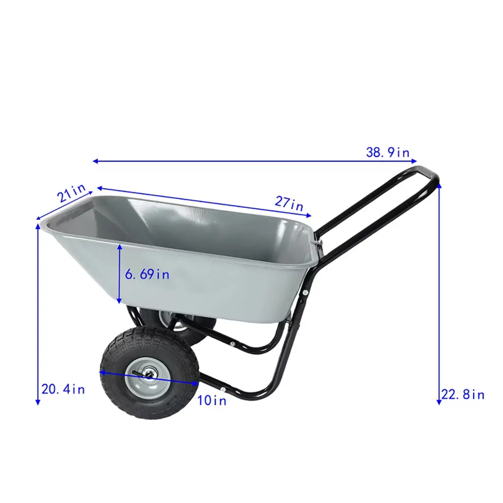 Jansno Gray Heavy-duty Garden Wheelbarrow With Dual 10-inch Pneumatic Wheels For Lawn & Outdoor Use