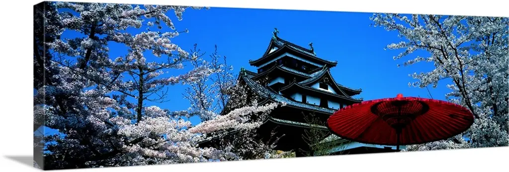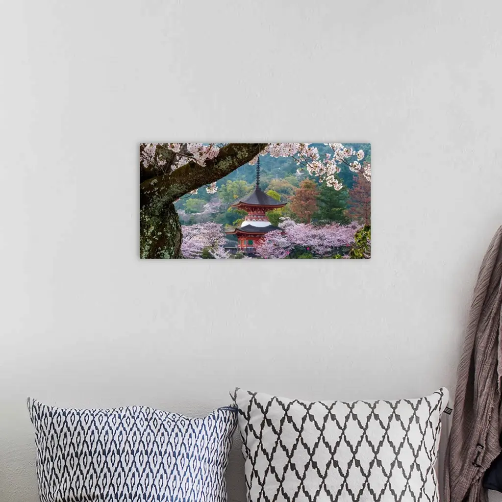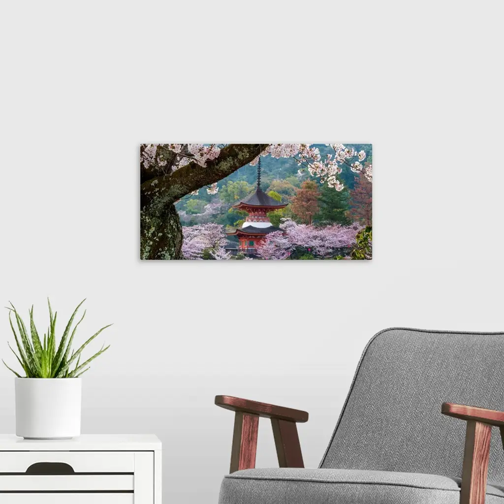 Fine art photograph of a building in Japan surrounded by blossoming trees.