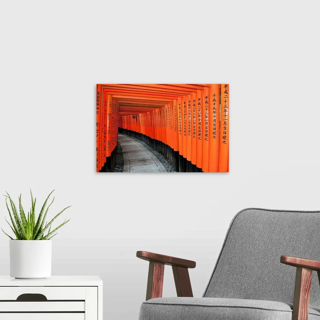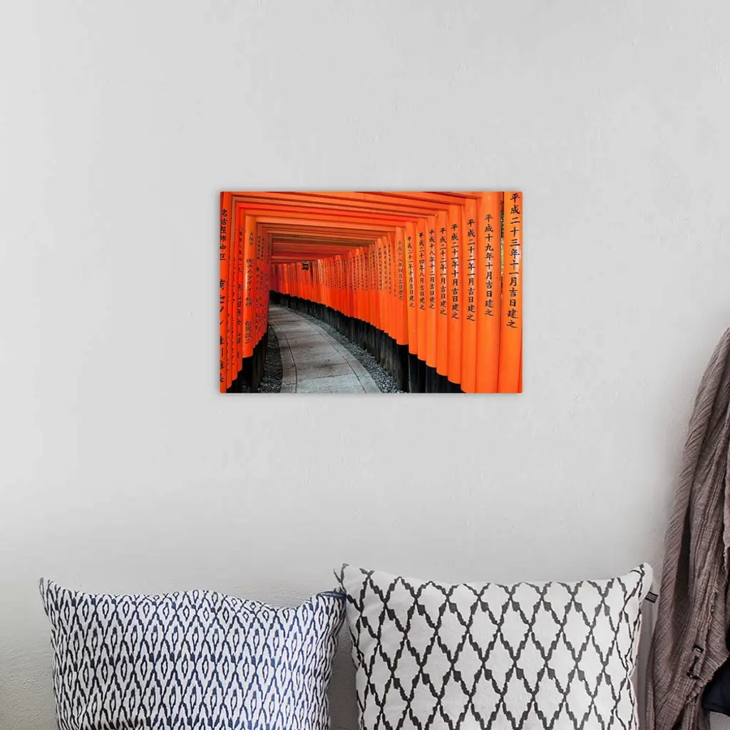 Japan, Red Columns Along Pathway, Kyoto wall art for home and office decor. Discover canvas art prints, photos, mural, big canvas art and framed wall art in GreatBigCanvas.com's varied collections.