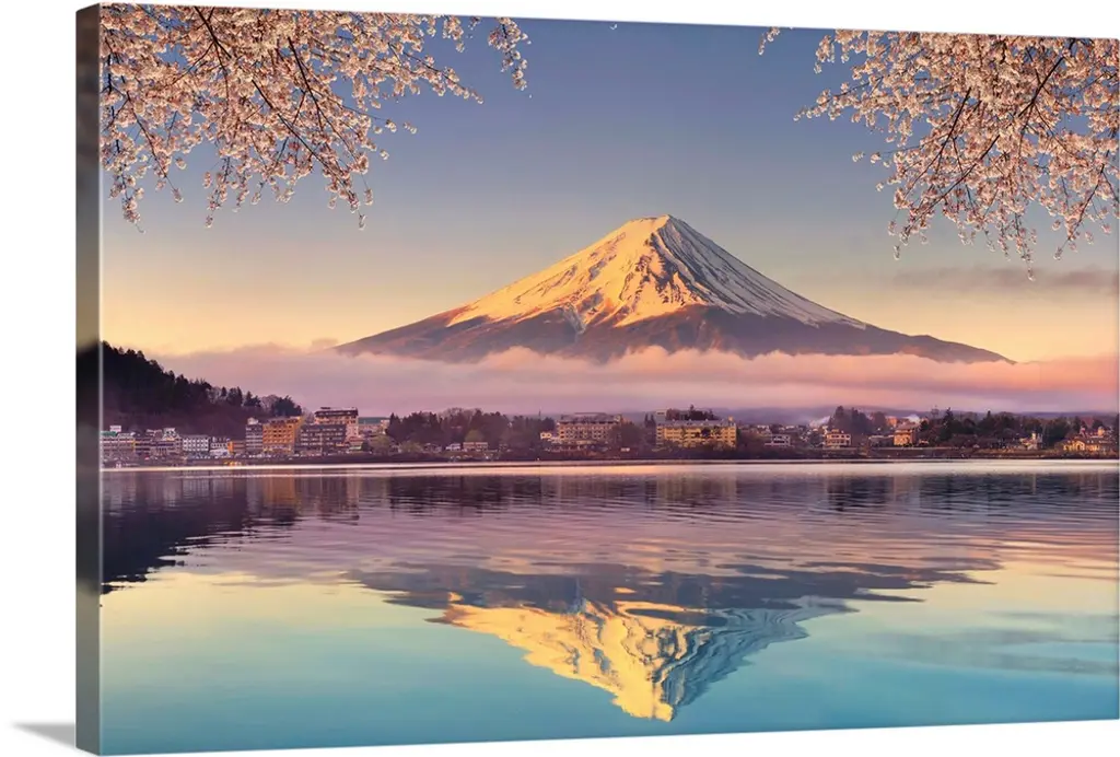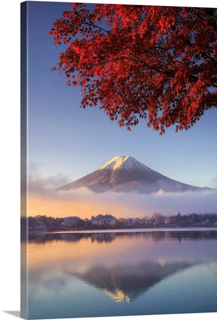 Japan, Yamanashi Prefecture, Kawaguchi Ko Lake and Mt Fuji.