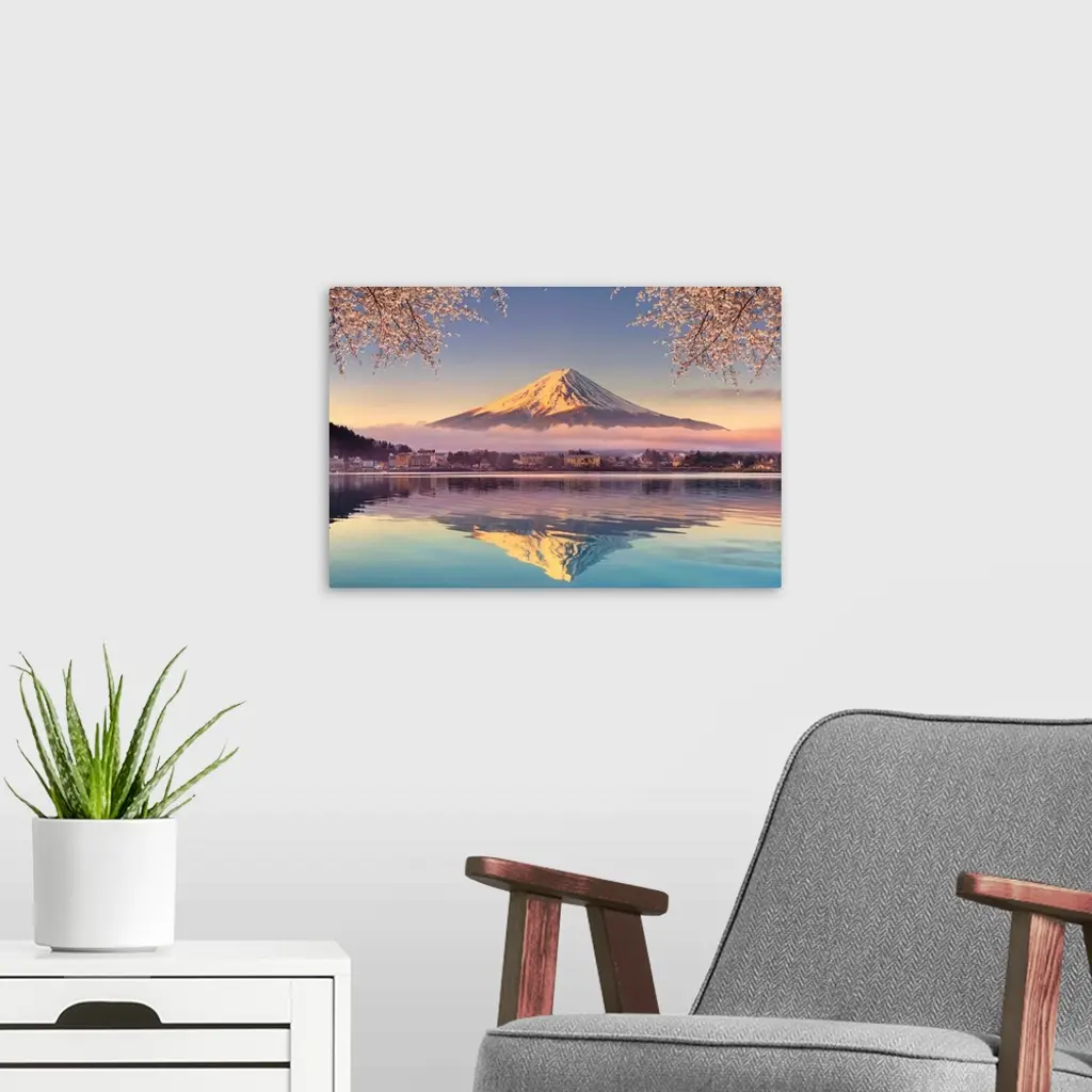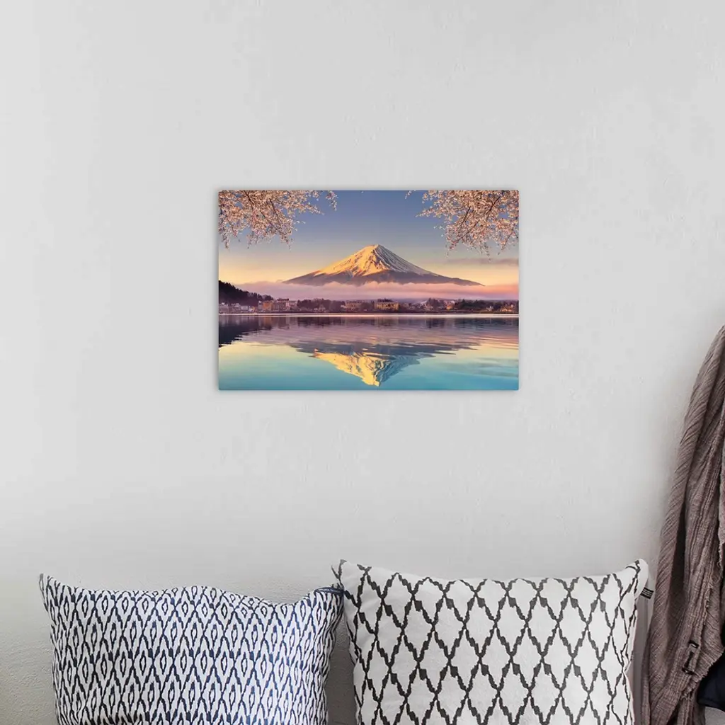 Japan, Yamanashi Prefecture, Kawaguchi Ko Lake and Mt Fuji.