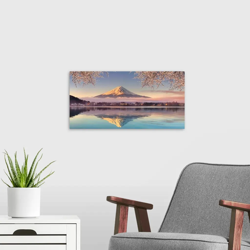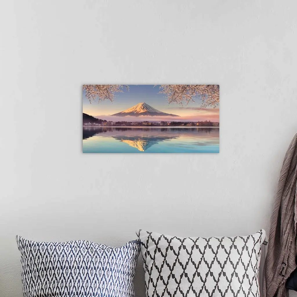 Japan, Yamanashi Prefecture, Kawaguchi Ko Lake and Mt Fuji.