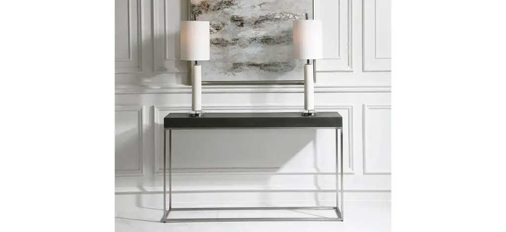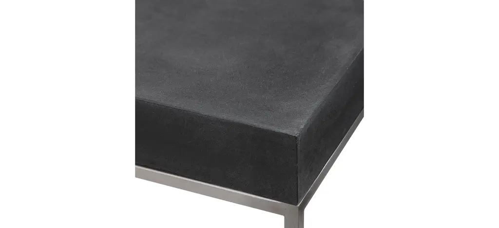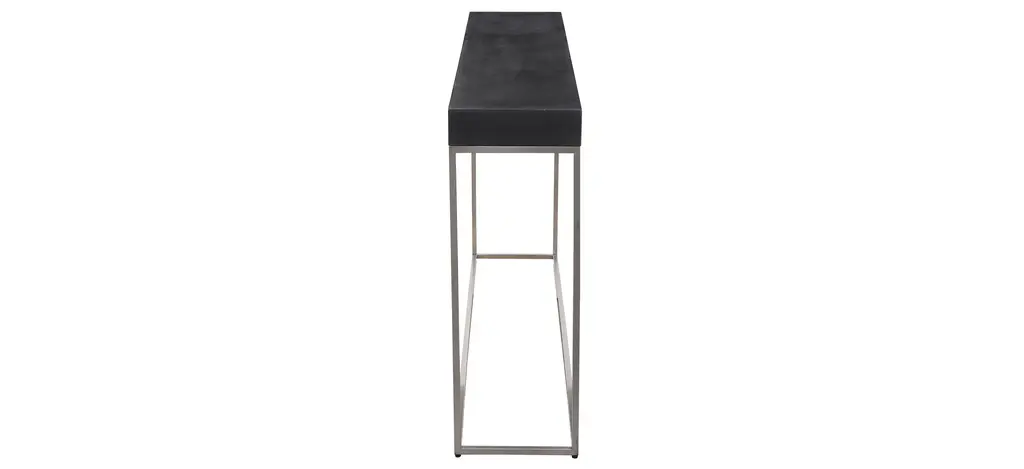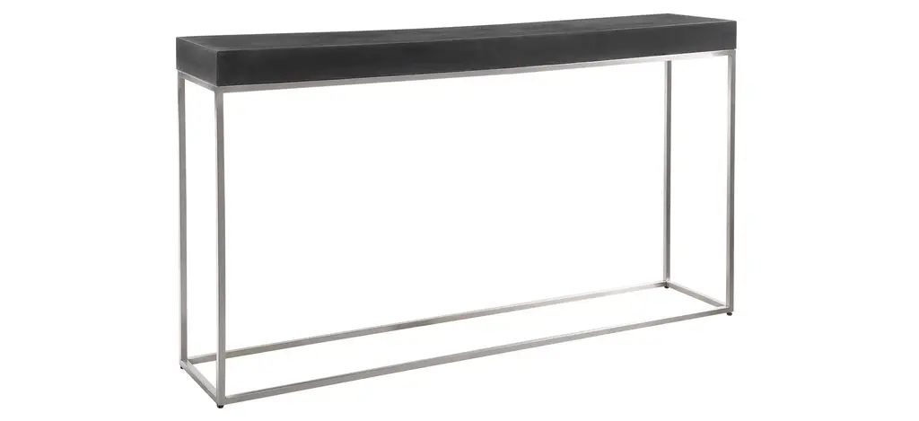 Sleek and contemporary, this Jase Console Table features a black concrete look atop a brushed nickel stainless steel base.