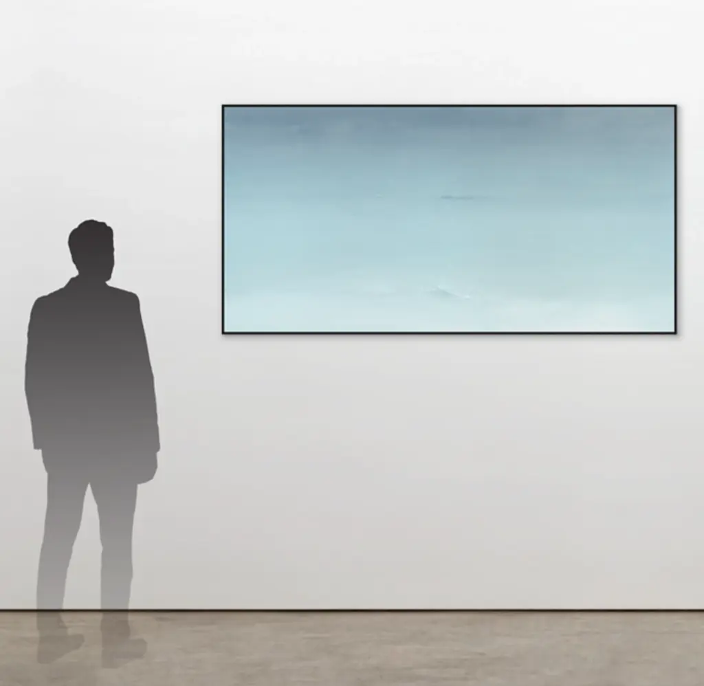 Using only Payne's grey, titanium white oils and a palette knife, Jason Adkins creates a contemplative atmosphere in Subtle Maneuvers at Dusk. The soft field is punctuated by undetermined objects, like land forms in an abstract landscape. Embracing the indefinite, Adkins leaves interpretation up to the viewer.General Public, an art curation and publishing company based in LA, is revolutionizing the way we think about and collect art. Founded by Portia de Rossi, a collector and art world disruptor, General Public makes a radical proposition: a painting shouldn't be enjoyed by just one person, but should be available to all. The General Public Synograph™, a groundbreaking 3-D technology, redefines the limits of printing, recreating every detail of the original artwork with total fidelity. Capturing the nuances of brushwork and technique, these textured prints are an authentic expression of the artist's hand.