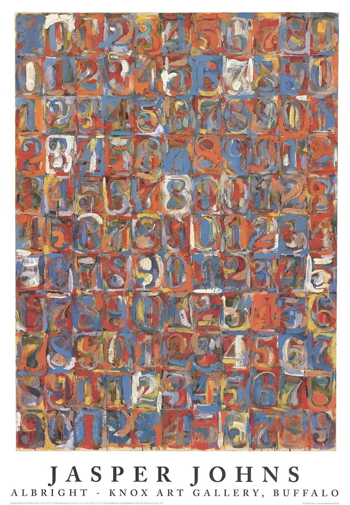 Artist: Jasper Johns Title: Numbers in Color Year: 1976 Signed: No Medium: Offset Lithograph Paper Size: 39.5 x 27.5 inches ( 100 x 70 cm ) Image Size: 35 x 26 inches ( 89 x 66 cm ) Edition Size: 1000 Framed: No Condition: A: Mint Additional Details: This is a second edition exhibition poster featuring one of Jasper Johns’ most iconic images from his celebrated Numbers series—an exploration of Arabic numerals rendered in collage and oil with vivid, painterly textures. Originally created for an exhibition at the Albright-Knox Art Gallery, this circa 1976 poster captures Johns’ fascination with systems of meaning, repetition, and abstraction. The Numbers series is among the most recognized and studied bodies of work in Johns’ career, merging visual logic with emotional intensity through color, pattern, and structure. This poster commemorates a key institutional exhibition of the series and remains a highly collectible piece of art ephemera from the peak of Johns’ influence. Perfect for collectors of American postwar art, Pop, and Conceptualism.