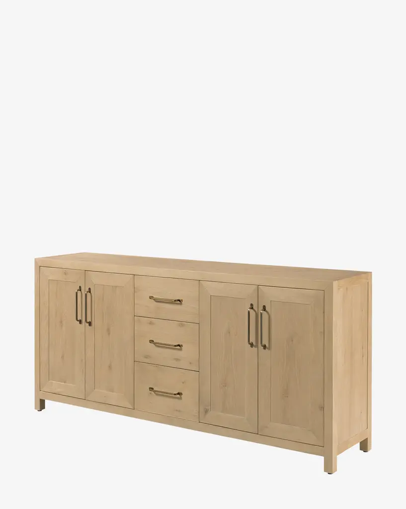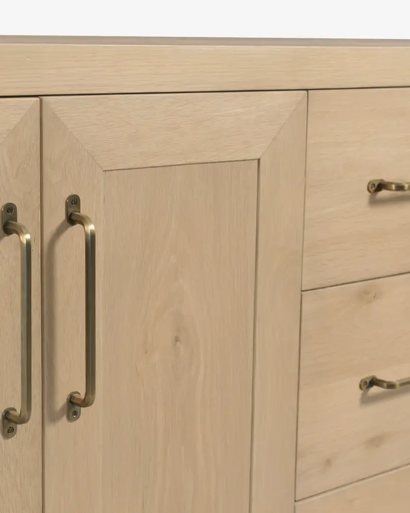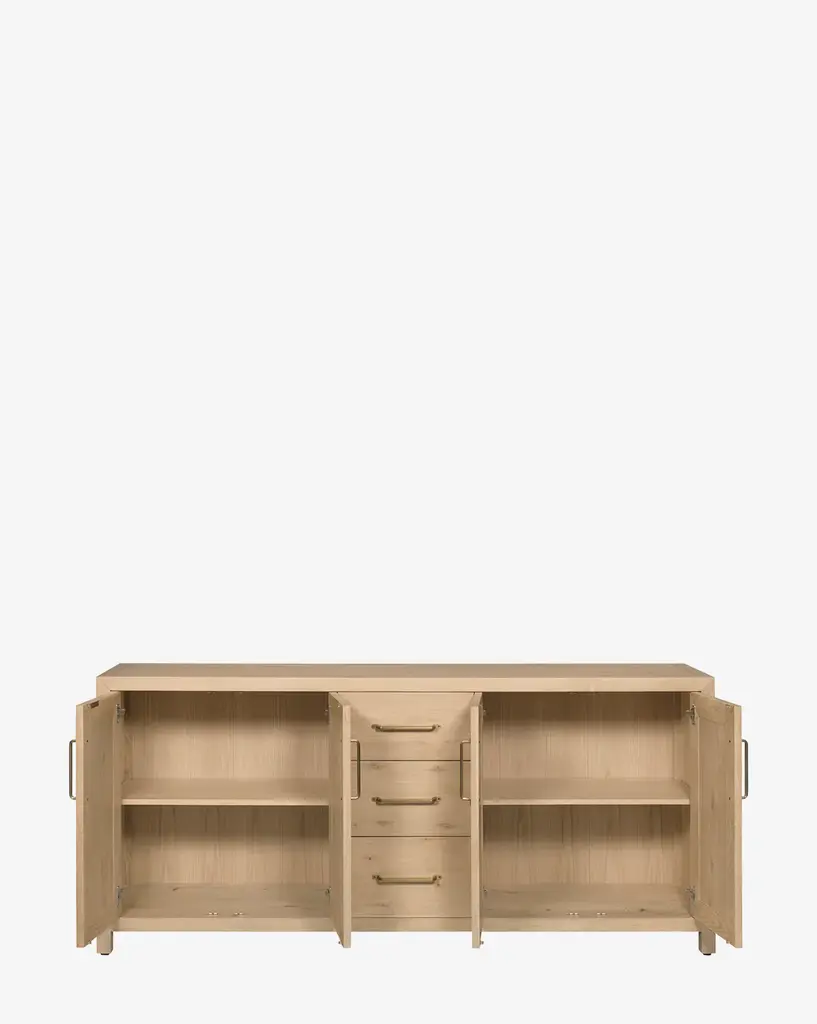 Designed with traditional roots, the Jax Console is made from oak wood with warm tones. Stately and practical, the console features brass hardware for a sophisticated feel.