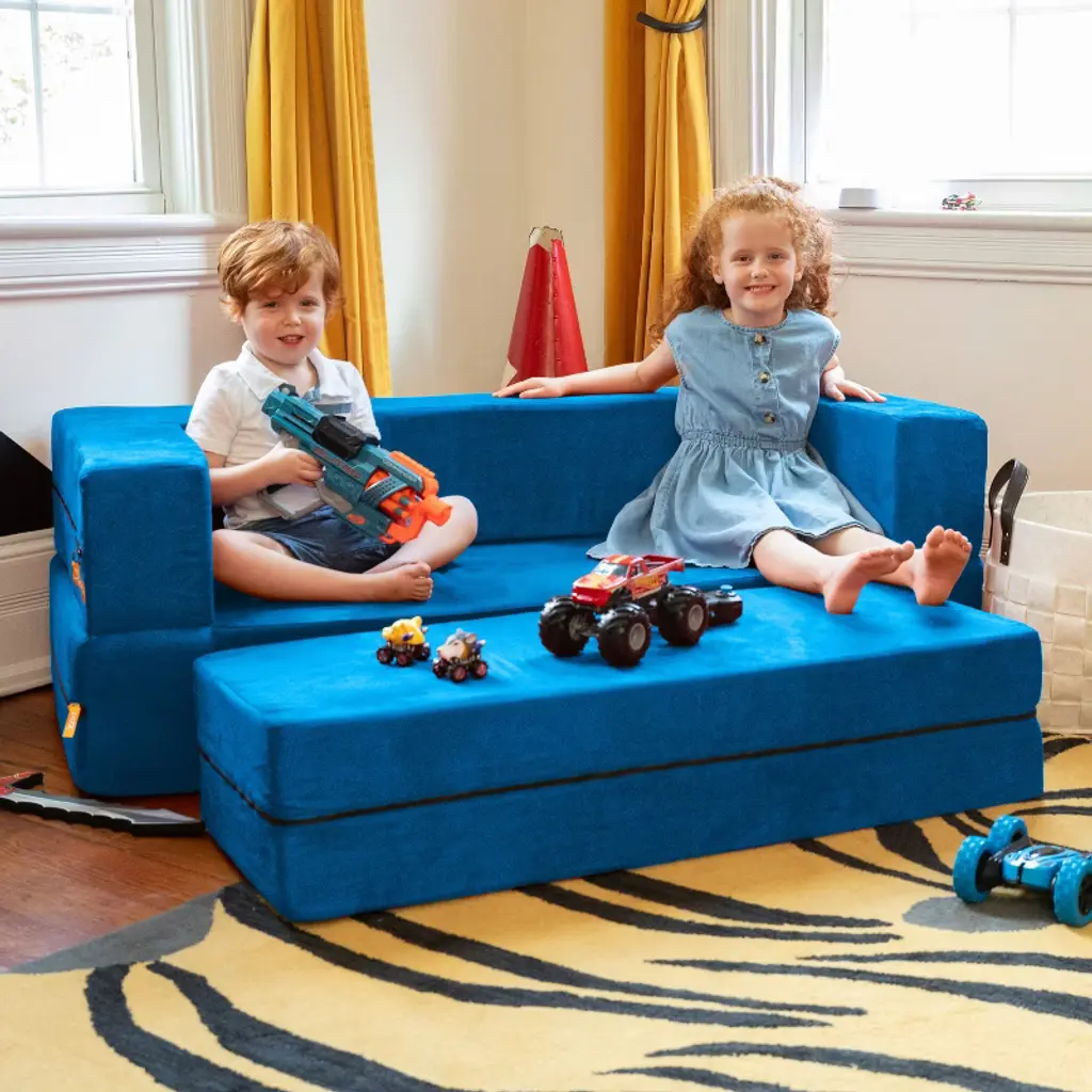 Jaxx Zipline Kids Sofa & Large Ottoman, 3 In 1 Fold Out Sofa, Big Kids Edition, Blueberry