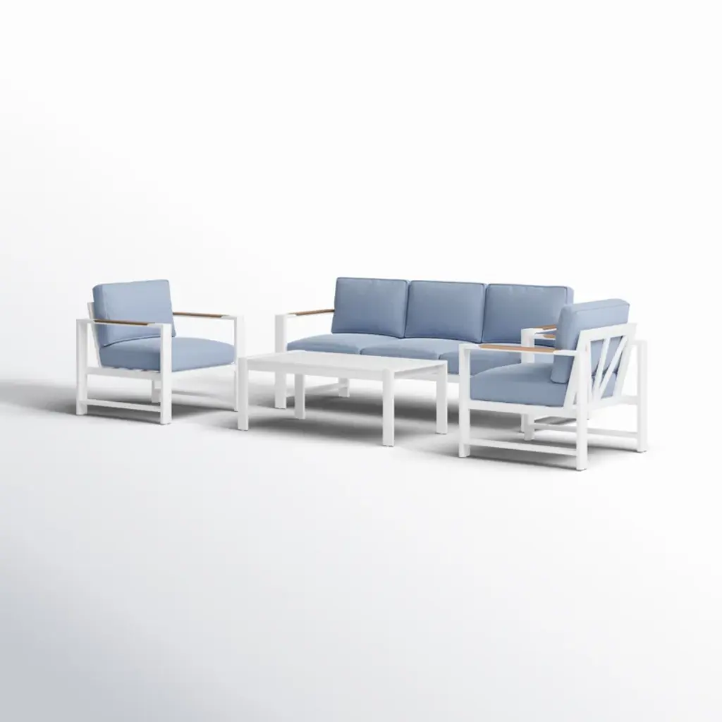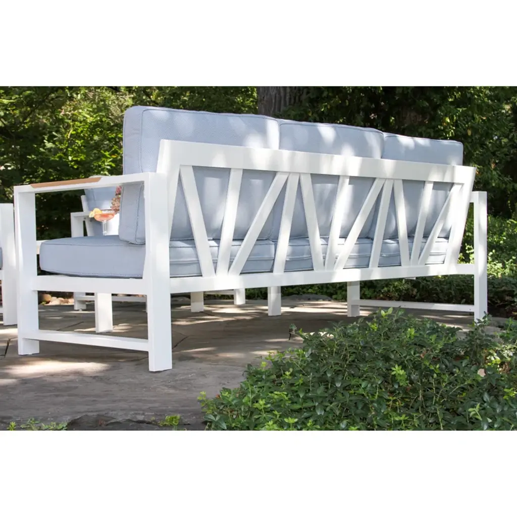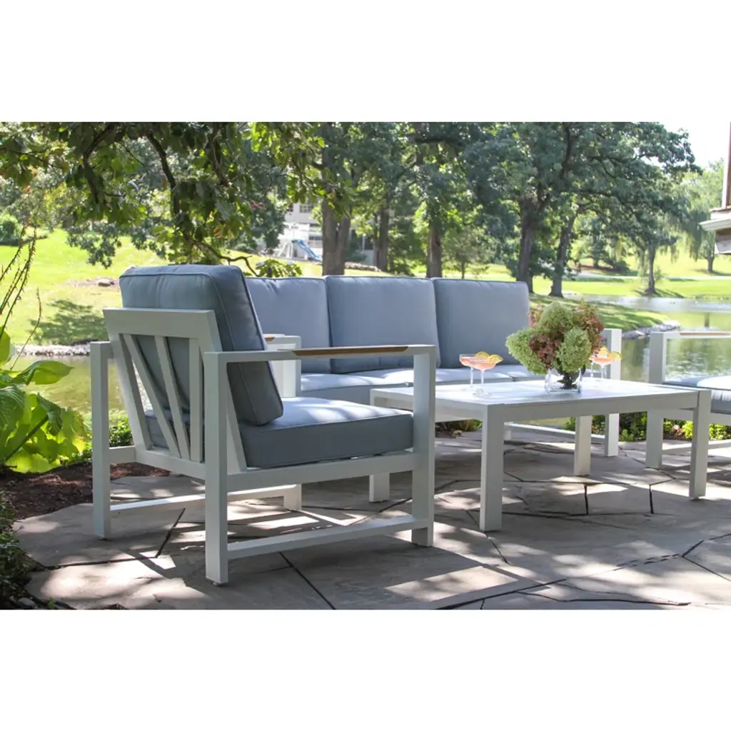 Elevate your outdoor living experience with our exquisite white aluminum outdoor seating group. Designed to capture the essence of coastal vibes, this set seamlessly blends comfort and style. Crafted from durable, powder-coated aluminum & solution-dyed olefin, it ensures longevity while exuding an air of elegance. Immerse yourself in the serenity of the outdoors as you relax in ultimate comfort. Unwind, soak up the sun, and create memories with friends and family on this timeless piece that brings the coast to your doorstep.