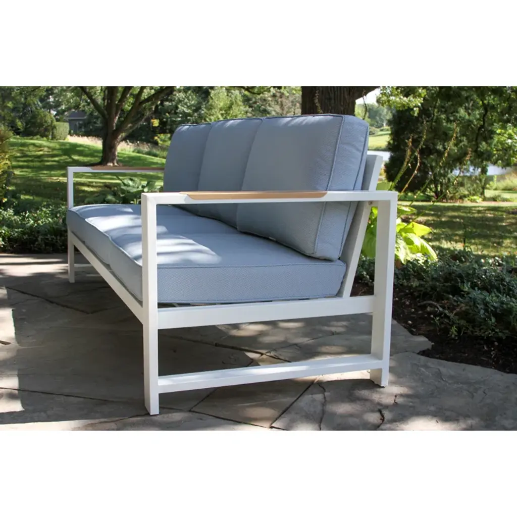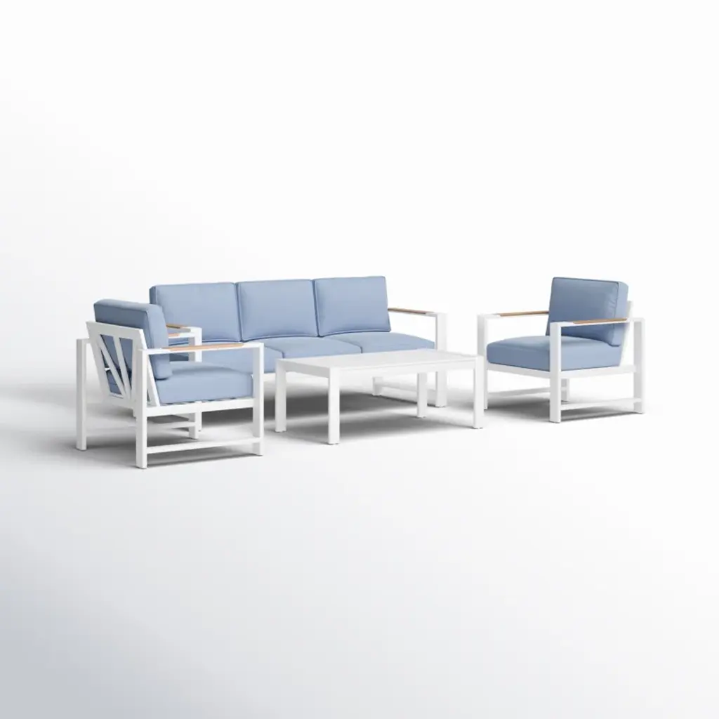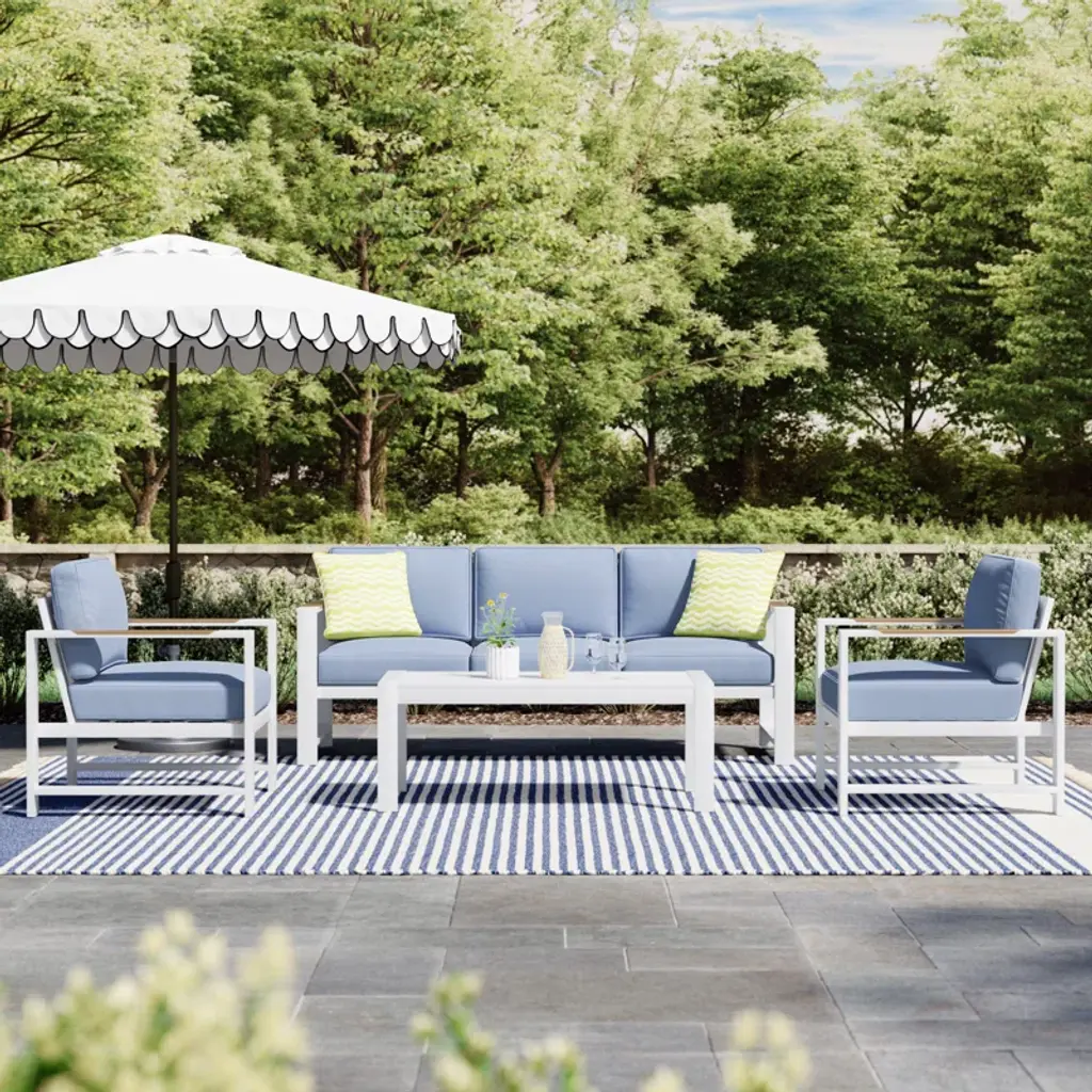 Elevate your outdoor living experience with our exquisite white aluminum outdoor seating group. Designed to capture the essence of coastal vibes, this set seamlessly blends comfort and style. Crafted from durable, powder-coated aluminum & solution-dyed olefin, it ensures longevity while exuding an air of elegance. Immerse yourself in the serenity of the outdoors as you relax in ultimate comfort. Unwind, soak up the sun, and create memories with friends and family on this timeless piece that brings the coast to your doorstep.