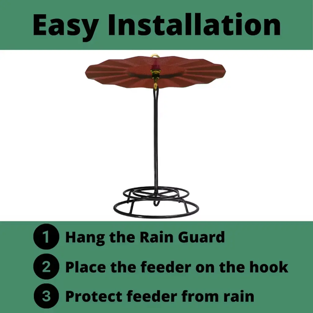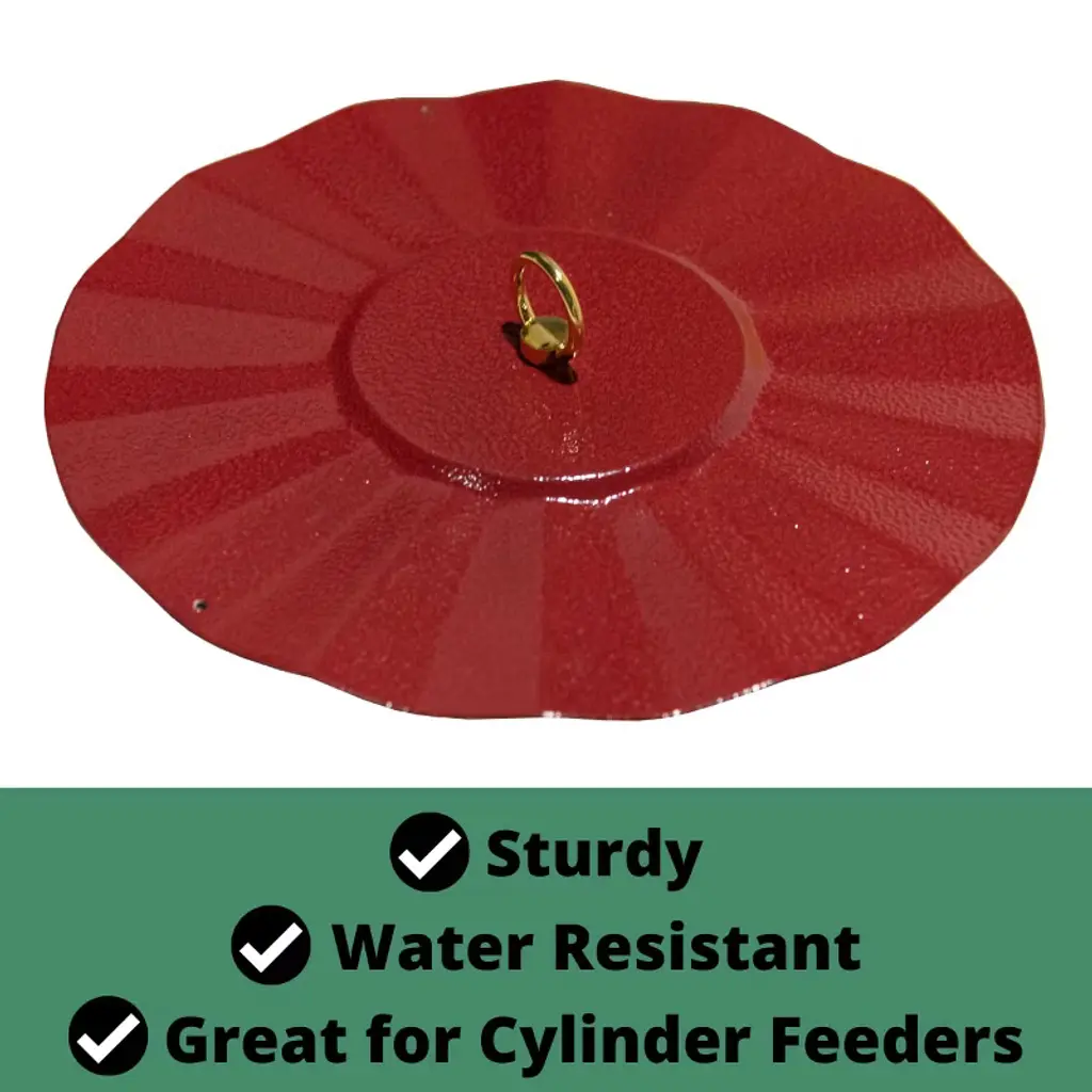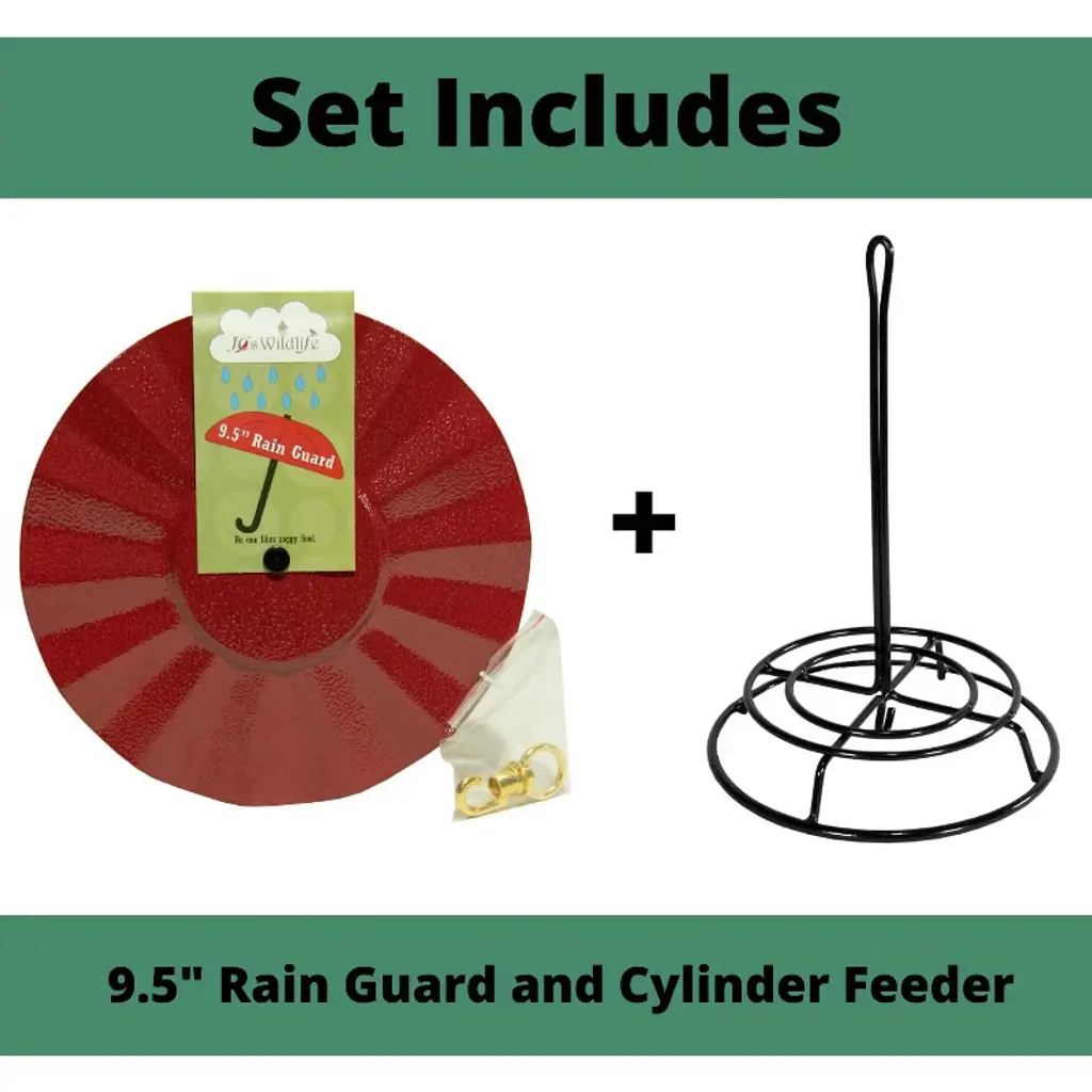 Jcs Wildlife 9.5" Metal Rain Guard And Bird Seed Cylinder Feeder Kit - Protect Your Bird Food From Rain And Overhead Messes! (Red)