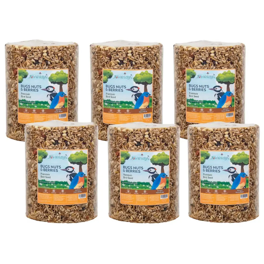Birds adore the JCs Wildlife Bugs, Nuts, and Berries seed cylinders! One look, and you can see the high-quality ingredients in this blend made by birders for birders right here in the Midwest US. Since the blend does not include any hulls, there is virtually no waste to kill your grass or attract pests-- no mess, no fuss! This easy-to-use, mess-free cylinder may be used with any cylinder feeder. Birds attracted to this blend: Bluebirds, woodpeckers, cardinals, titmice, and wrens, along with all your backyard visitors! Ingredients: Sunflower chips, diced tree nuts, split peanuts, meal worms, cranberries, diced papaya, juniper berries, and gelatin Guaranteed Analysis: Crude protein- min 24% Crude fat- min 31% Crude fiber- max 11%