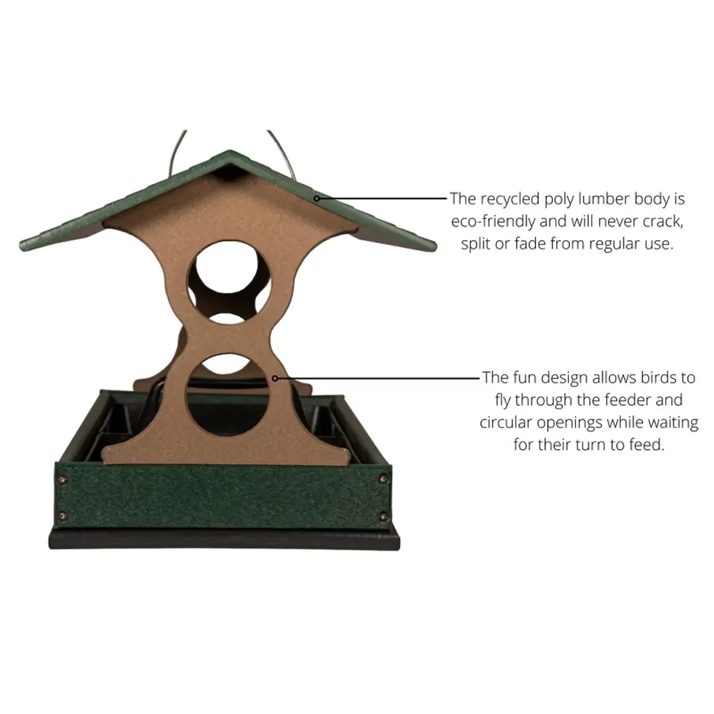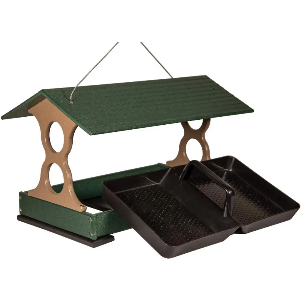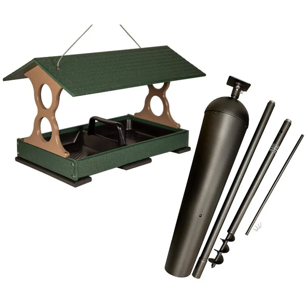 Jcs Wildlife Large Fly Thru Bird Feeder With Denali Squirrel Proof Mounting Pole (Green And Tan)