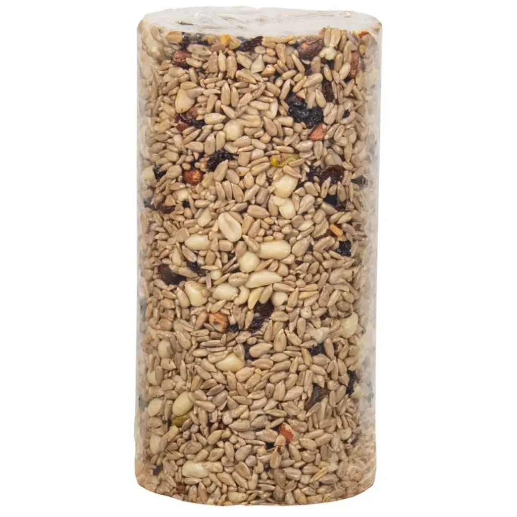 Keep your lawn beautiful and your feathered friends happy with the JCS Wildlife No Mess, No Waste Fruit Blend Premium Bird Seed Cylinder! Top quality ingredients are used throughout this cylinder made by birders for birders right here in the midwest US. No hulls. no shells, and the best ingredients for a variety of birds mean that this blend feeds your backyard friends, not destroy your lawn. This easy-to-use, mess-free cylinder may be used with any cylinder feeder. Birds attracted to this blend: Cardinals, chickadees, woodpeckers, nuthatches, finches, bluebirds, and titmice. You may also notice warblers, wrens, kinglets, and mockingbirds feasting. Ingredients: Sunflower chips, shelled peanuts, diced tree nuts, rendered beef suet, corn, oats, raisins, cranberries, and gelatin Guaranteed Analysis: Crude protein- min 22% Crude fat- min 33% Crude fiber- max 11%