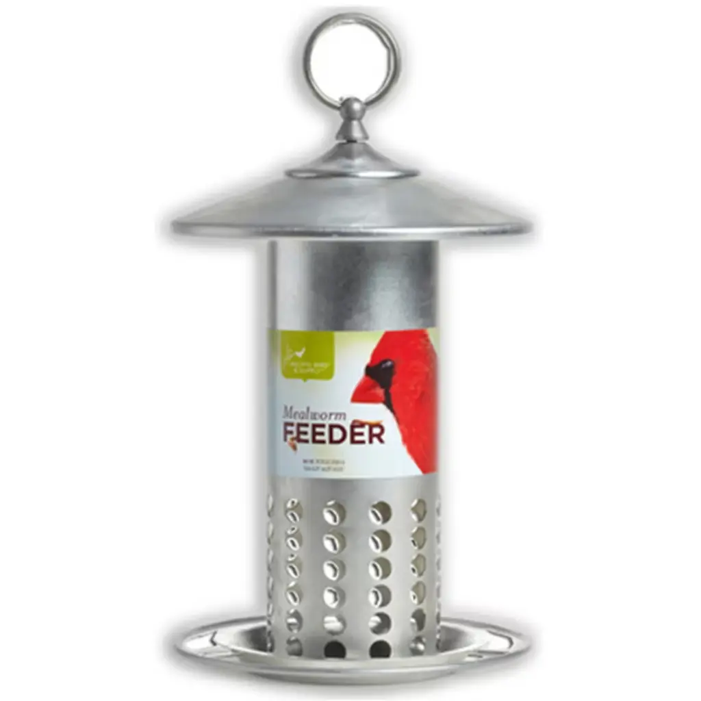 Put the lockdown on "bully" birds and critters with this mealworm feeder based on the design by Steve Gilbertson. Bluebirds and other desirable mealworm eating birds can come and go as they please while squirrels and European Starlings are thwarted. Now with 2 feeding cups, simply fill with mealworms or other desired food, open the "gate", and place the cups in the holes in the center of the feeder. For best results place near a water feature such as a birdbath. Start off by putting a small amount of food in your new feeder until the bluebirds begin feeding regularly. This will help prevent waste. Please note that while mealworms are considered a “staple item” when feeding bluebirds, they will also eat suet (especially peanut butter suet) and sunflower hearts (out-of-shell). Suet can be crumbled and placed in the feeder cup, as well as sunflower hearts. And don’t forget - mealworms can be fed both live and dried. If you really want to attract bluebirds to your feeder, try some live mealworms, about 15-20 at a time! Features of your Feeder: ● The Deluxe Modern Enclosed Bluebird Feeder is a “caged” type feeder. It is designed to keep larger birds like European Starlings and Northern Mockingbirds out, but still allow bluebirds and other small songbirds access. Some of the other birds you might see using this feeder are wrens and sparrows. ● There are grooves cut into all 4 outer sides of the base to allow the bluebirds a better place to grab onto when entering the feeder. These grooves also contain drain holes at each end so that water does not collect in them. ● Feeder includes 2 plastic mealworm cups which holds approximately 4oz of mealworms each. Should the need ever arise, replacement cups are available on the JCs Wildlife website. ● Your feeder is constructed using high-quality, recycled poly-lumber. This material is made out of at least 95% recycled milk jugs and is guaranteed to never crack, split or fade due to normal weather exposure. ● Cleaning is a breeze