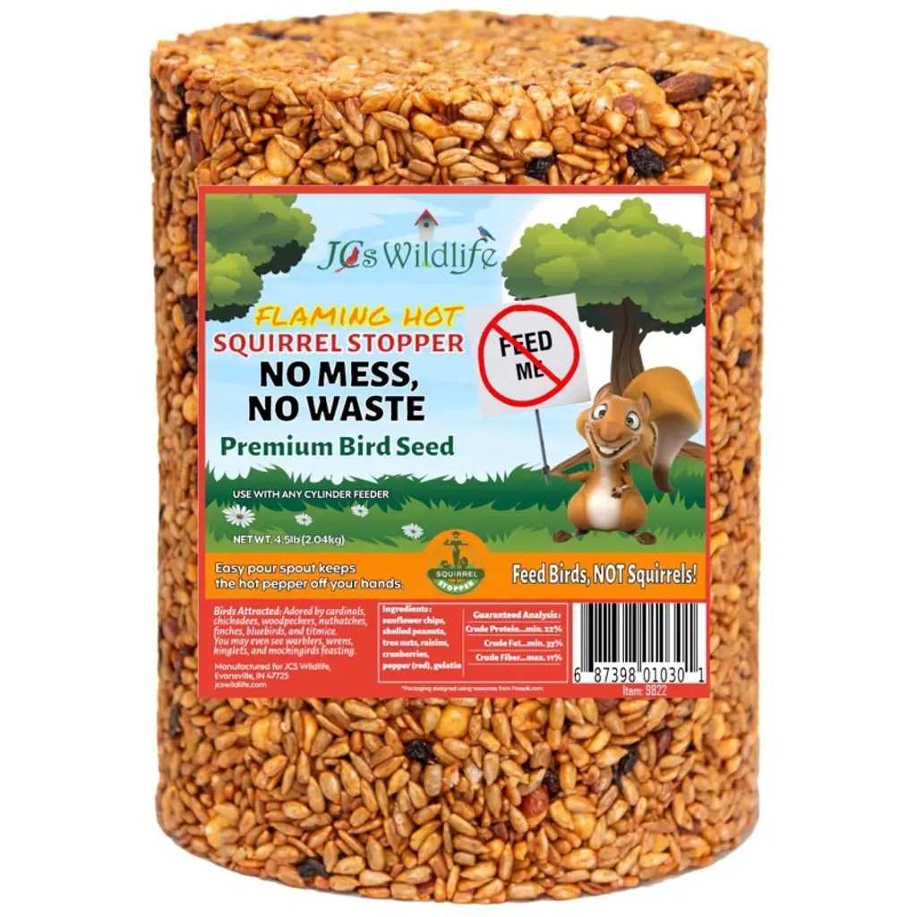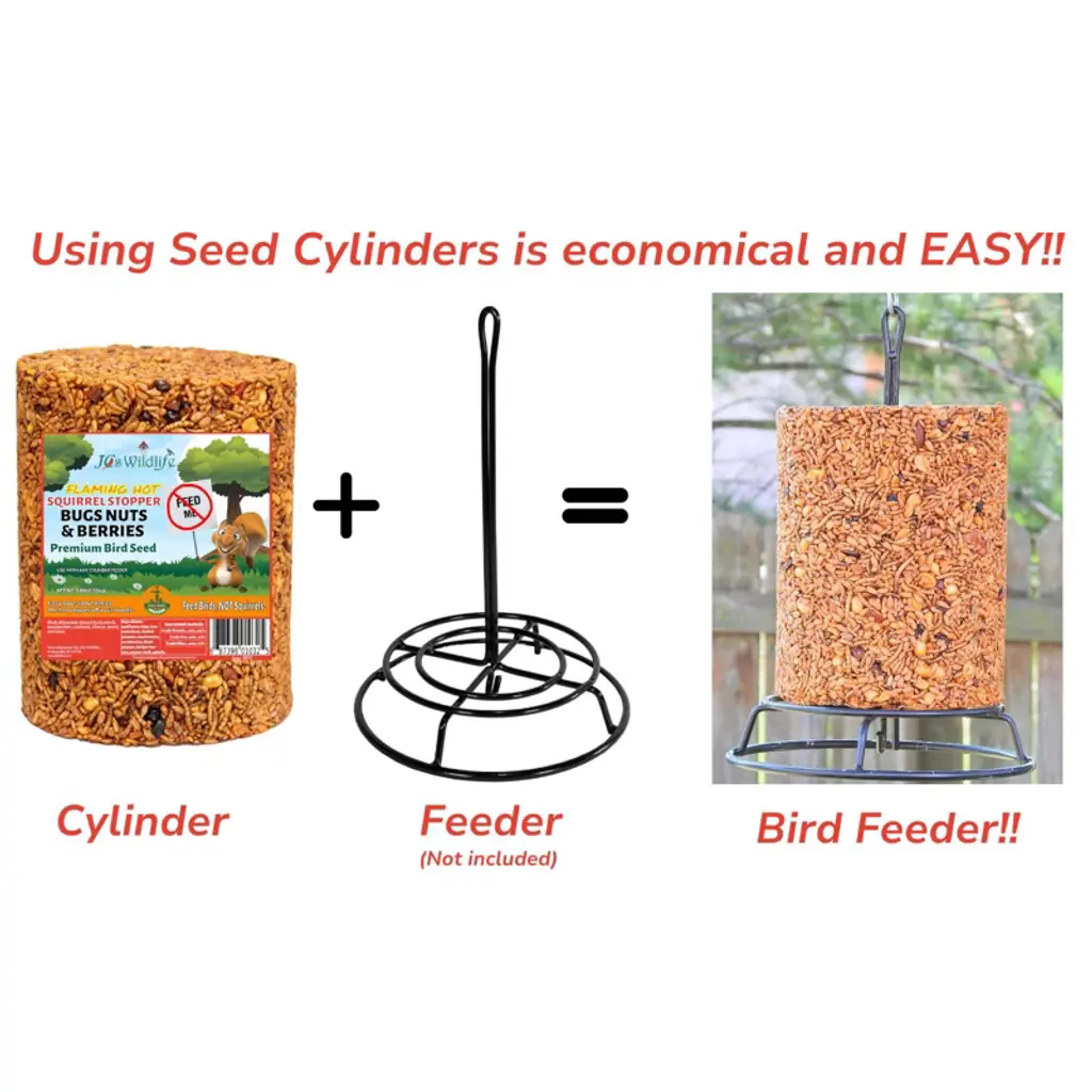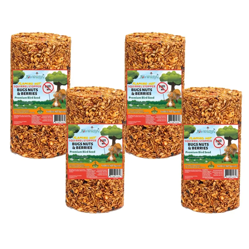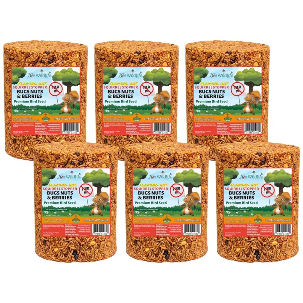 Give your backyard birds a gourmet treat they’ll flock to—without inviting squirrels to the party. The JCS Wildlife Squirrel Stopper Bugs, Nuts & Berries Large Cylinder is a 3.8lb powerhouse of premium ingredients, including sunflower chips, tree nuts, cranberries, and protein-rich mealworms. Infused with capsaicin to naturally deter squirrels, this no-mess, no-waste seed cylinder is designed to attract a vibrant variety of wild birds while keeping your feeders clean and critter-free.