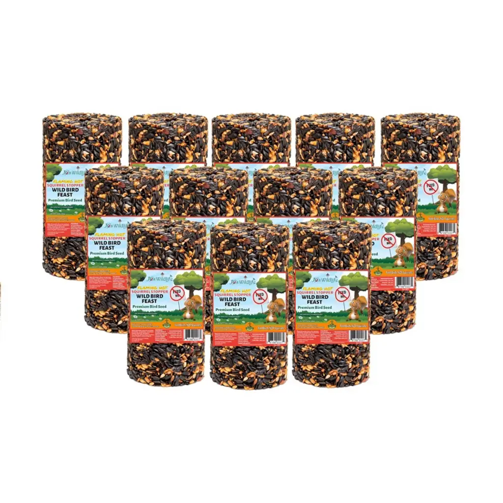 Keep your backyard birds happy and your feeders squirrel-free with the JCS Wildlife Squirrel Stopper No Mess, No Waste Large Cylinder. Packed with premium ingredients like sunflower chips, shelled peanuts, almonds, walnuts, pistachios, and cranberries, this 4.5lb seed cylinder delivers high-energy nutrition without the mess. Infused with capsaicin to deter squirrels naturally, it’s the perfect solution for bird lovers who want to attract colorful species—like cardinals, chickadees, and woodpeckers—while keeping pesky critters at bay. Ingredients Sunflower Chips Shelled Peanuts Almonds Walnuts Pistachios Cashews Rendered Beef Suet Corn Oats Raisins Cranberries Capsaicin Gelatin Guaranteed Analysis Crude Protein min. 22% Crude Fat min. 33% Crude Fiber max. 11%