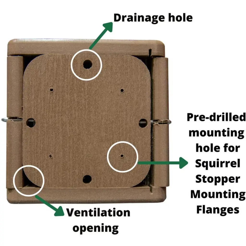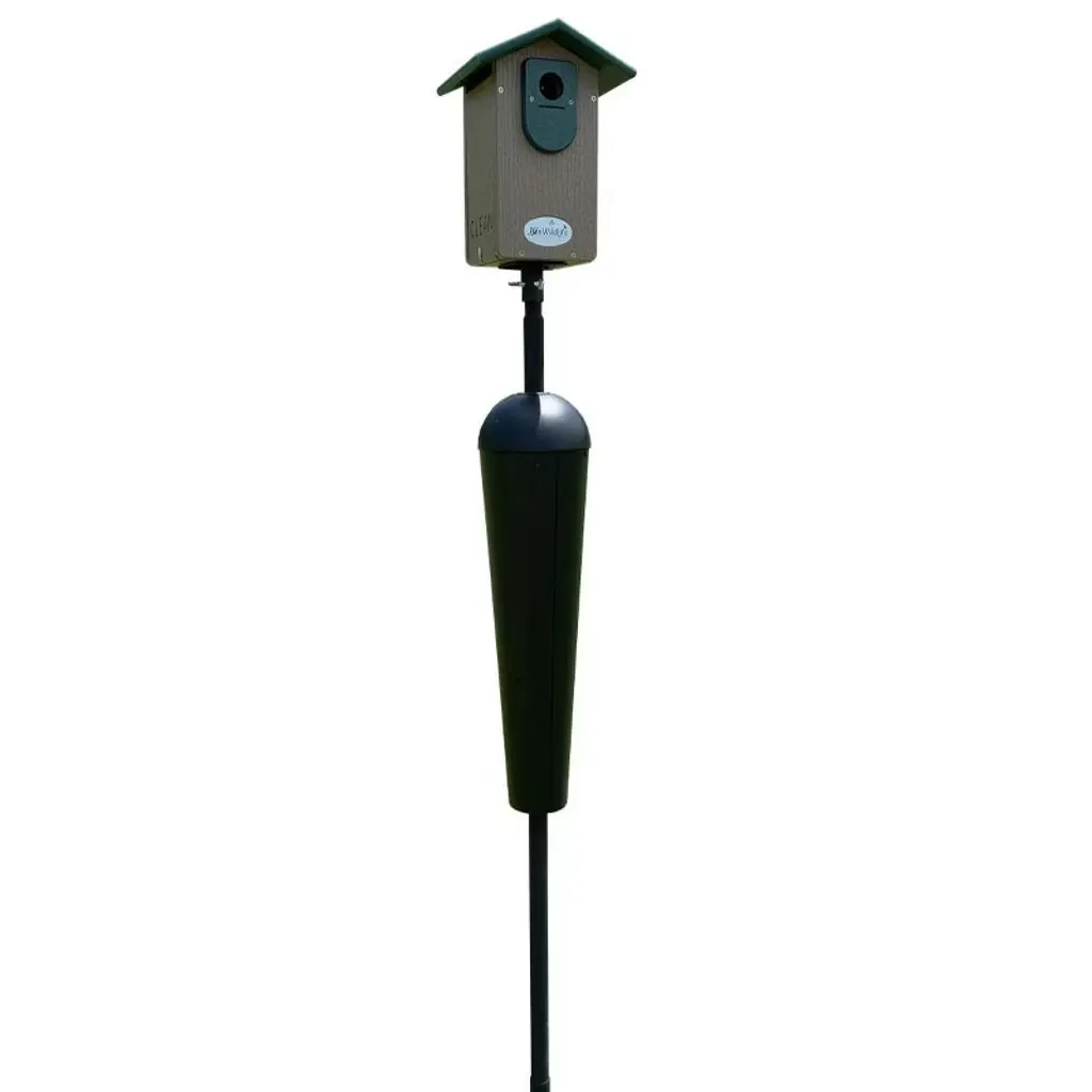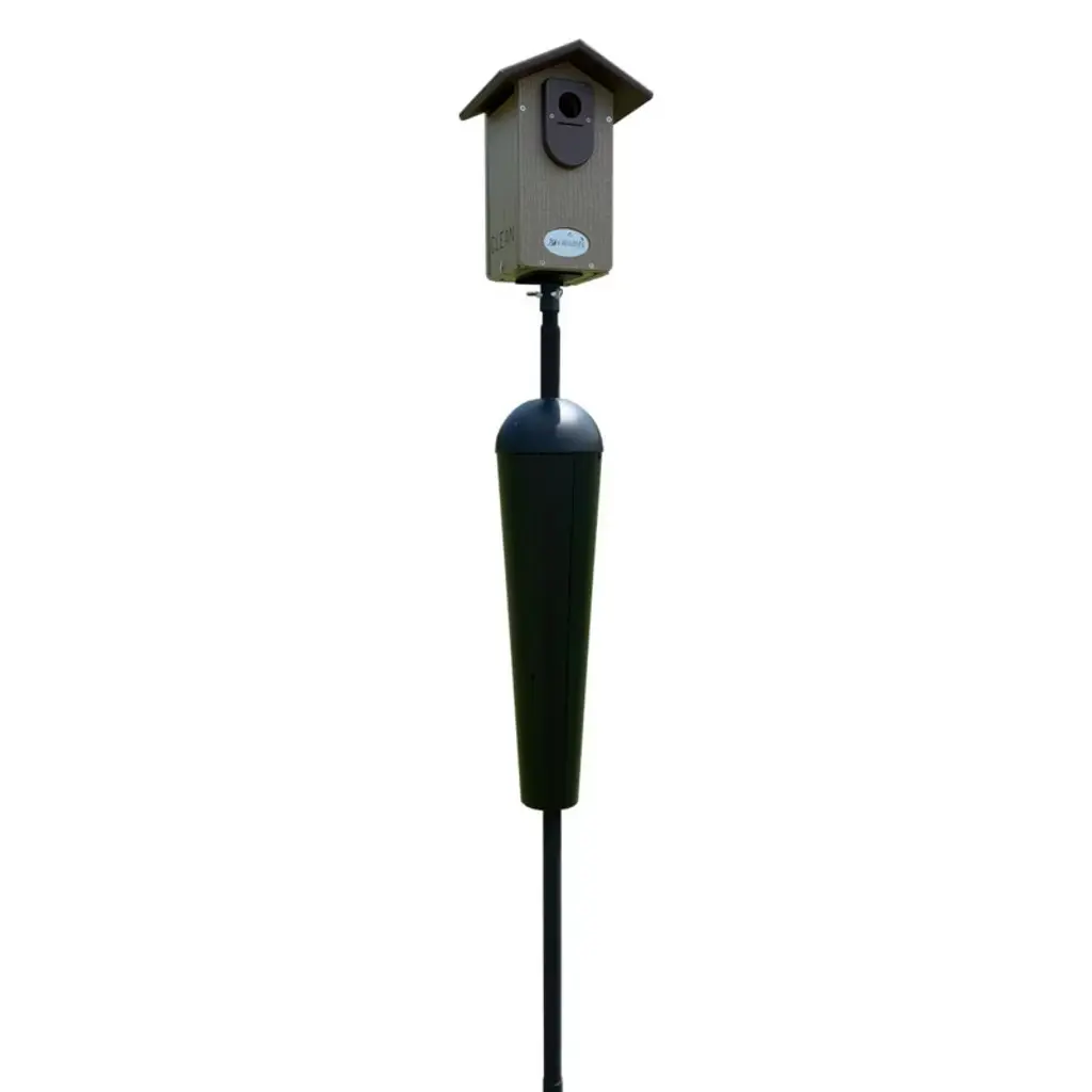 This JCs Wildlife Ultimate Bluebird House and Squirrel Stopper Denali Squirrel Proof Mounting Pole is the duo that can't be beat, especially by squirrels! The high quality and heavy duty Squirrel Stopper Denali paired with our popular Ultimate Bluebird House is a winner in every situation. Ultimate Bluebird House: This beautiful hand-made Ultimate Bluebird House is made by JCs Wildlife with Recycled Poly Lumber. It features all screwed construction using stainless steel screws and routed edges. This house will not crack, split or fade - it will look great for years to come. The colors are vibrant and UV protected. The entrance hole diameter is 1.5" inches, just perfect for Eastern and Western Bluebirds! The interior front wall includes notches to help the birds enter and exit the box. A stainless steel mesh riser on the bottom holds the nest up off of the floor for circulation and extremely easy cleaning. The poly lumber is also stain proof and easier to clean than regular wood. One side door opens to a viewing window to allow you to see the nest without disturbing anything inside. The word "View" is clearly marked on the door. The other side door, clearly marked with the word, "Clean" opens to allow easy access for cleaning. Can be attached to the Squirrel Stopper Denali Squirrel Proof Mounting Pole on the bottom. Made in the USA! Dimensions: Overall Dimensions: 9.5" W X 12" H X 8" D. Denali Squirrel Proof Mounting Pole: The Squirrel Stopper Denali is our mounting pole kit system but with a squirrel proof baffle! This design is new to our family of squirrel proof pole systems. The Denali is a totally squirrel proof pole that features a sturdy, rust-resistant design, sure to hold up even the largest and heaviest birdhouses and bird feeders. The pole itself is innovative in design, with a 1.25" diameter that tapers to the "universal" 1 inch diameter top. The overall height of the Denali is 79.5" and measures between 58.5" - 53.5" in-ground.