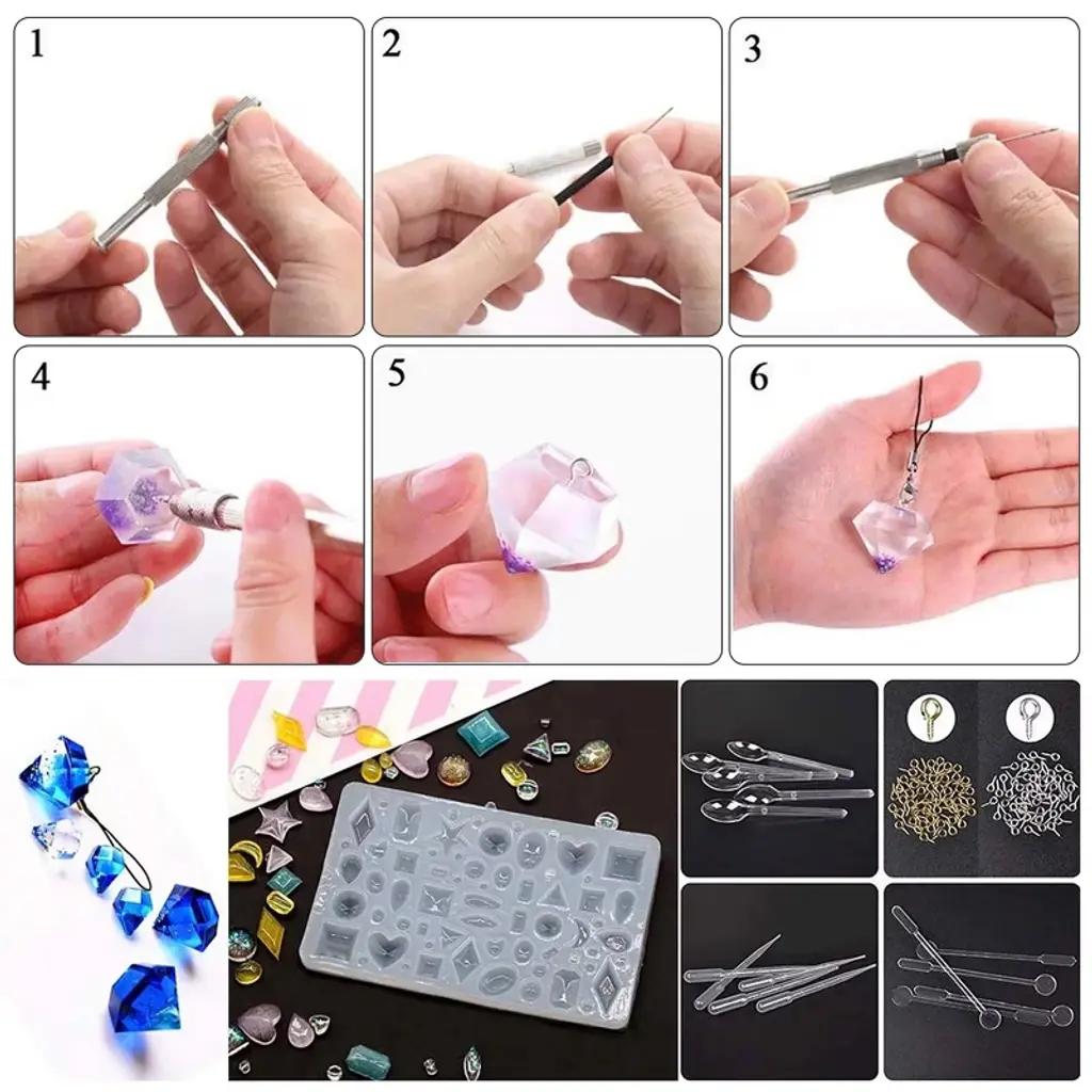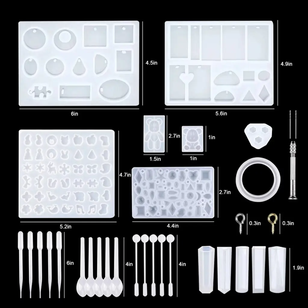 229pcs silicone casting mold set is an excellent product for DIY jewelry craft making. The set includes practical tools that simplify the crafting process, making it suitable for both beginners and professionals. With this epoxy resin molds tools set, you can create unique and personalized crafts using a variety of decorations, unleashing your creativity and imagination. The high-quality materials used in the molds ensure durability and longevity, providing excellent value for the price. Give the gift of handmade creativity to your loved ones and bring them happiness with a unique and meaningful creation made using this silicone resin mold set. TSV Necklace Earring Diamonds Bear Epoxy Resin Making Kit for Resin Casting Beginner: 229pcs silicone casting molds tools set for DIY jewelry craft makingJewelry craft molds are made of silicone, flexible, resistant to tearing, and reusableScrew eye pins are made of metal alloy, and stirrers, droppers, and spoons are made of quality plasticMore than 100 shapes include star shapes, round shapes, heart shapes, letters, cubic shapes, etcSilicone resin jewelry molds with smooth and shiny interiors, easy to de-moldJewelry tools are suitable for making key chains, earrings, necklaces, pendants, bracelets, and morePackage Includes: 8 x Jewelry Molds 5 x Plastic Stirrers 5 x Plastic Droppers 5 x Plastic Spoons 5 x Shapes Resin Molds 1 x Hand Twist Drill 100 x Screw Golden Eye Pins 100 x Screw Silver Eye Pins