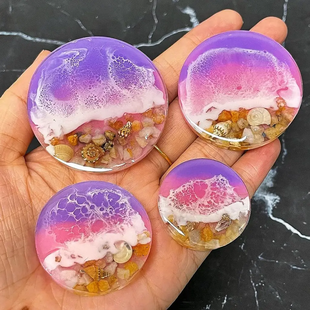 【Set of 4 Sizes Circle Molds】: This package contains 4 sizes of circle molds, with each size measuring 2'', 1.75'', 1.5'', and 1.25''. The depth of each circle mold is 0.25'', and there are 8 pcs for each size【Multi-functional Resin Molds】: An adorable mold for the resin craft lover for making resin keychain, resin phone grip, resin pendant, resin earrings, resin pet dog tags, resin ornaments, Christmas gift, home decor【Thick Silicone Molds】: These circle mold is made from thick silicone with shiny surface, the finished products has a mirror effect. These resin casting molds are very flexible, easy to demold, easy to clean, reusable【Compatible with Various Casting Material】: These cute round silicone molds are compatible with most casting material such as epoxy resin, UV resin, plaster, gypsum, clay【Adorable Gift】: An adorable gift for the resin craft lover, special Christmas gift for your friends and family to enjoy the resin craft times