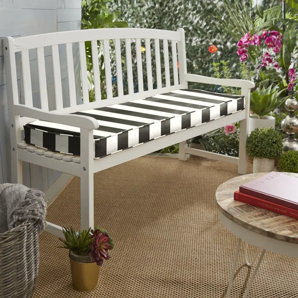 Our outdoor bench cushion brings an instant refresh to your patio seating. Made with weather-resistant acrylic fabric and foam blend filling, this reversible rectangle cushion is designed for comfort and longevity. Cushion ties keep it securely in place, and a zipper closure allows for easy removal of the cover when it's time for a quick clean. Plus, it's versatile enough to mix and match with your existing outdoor decor.