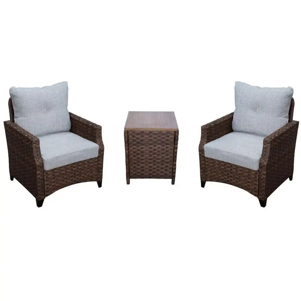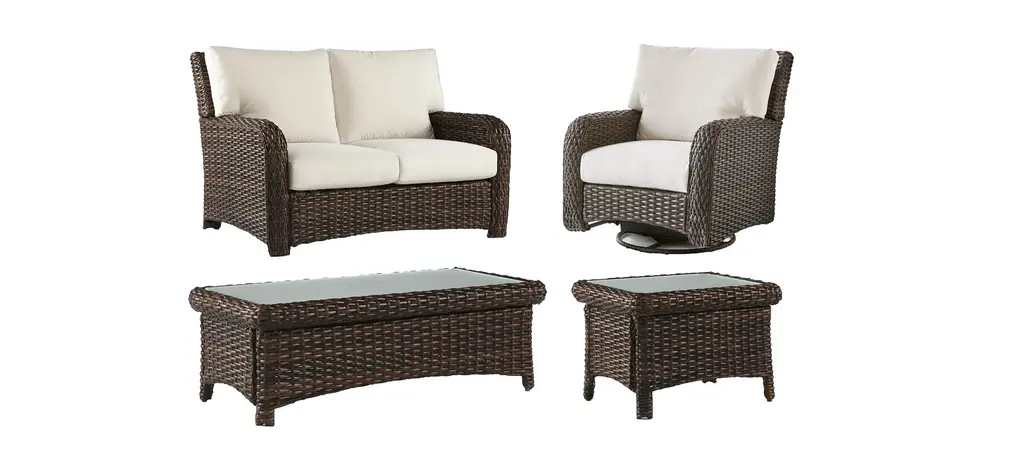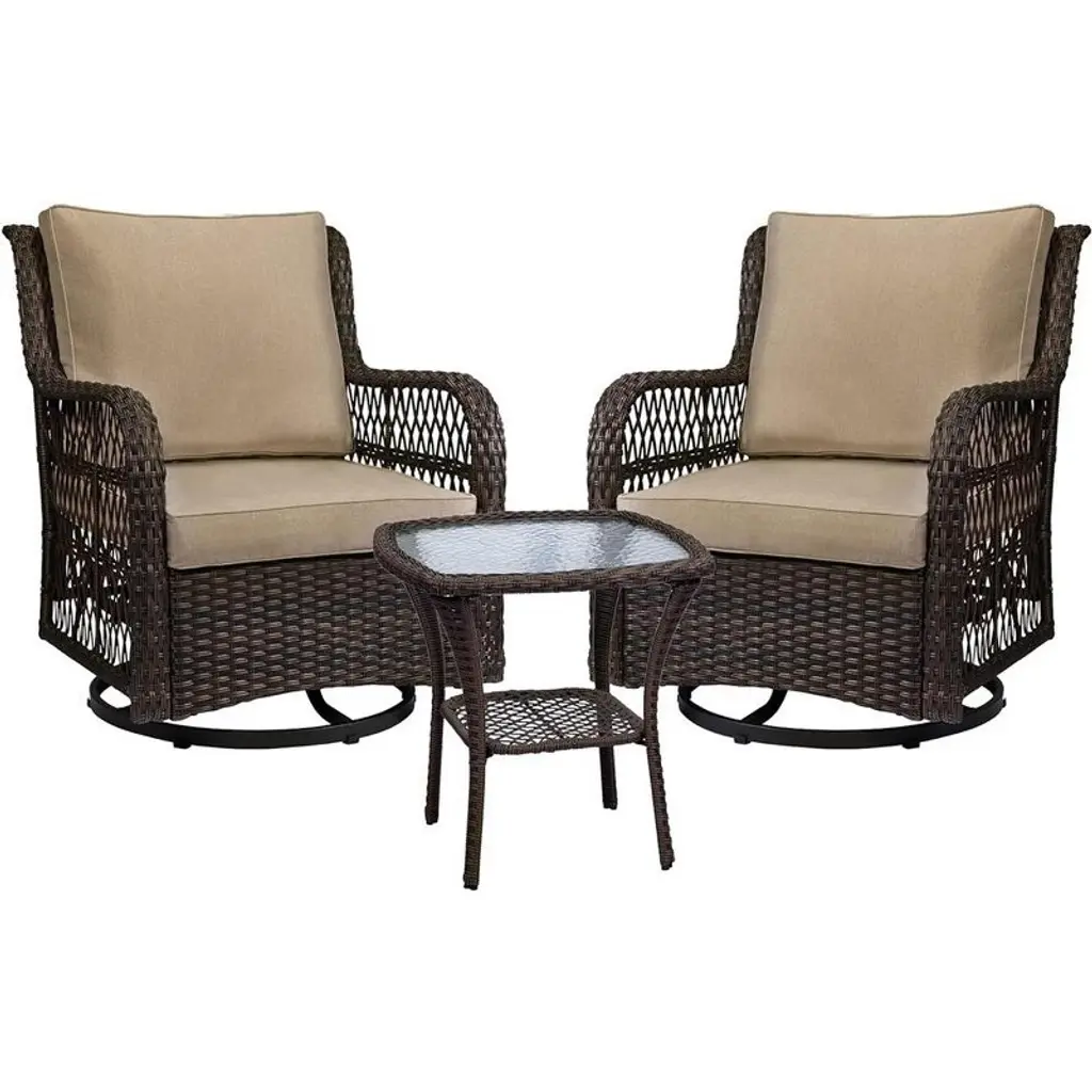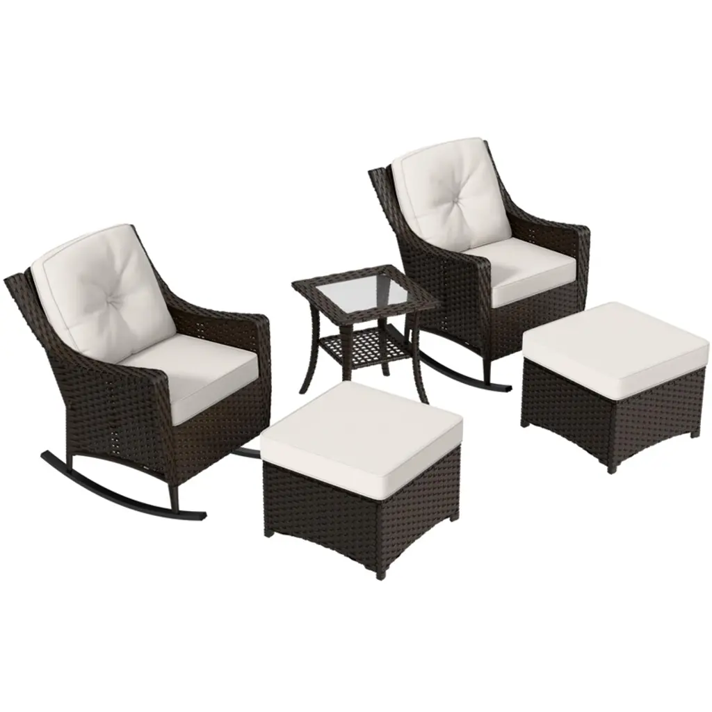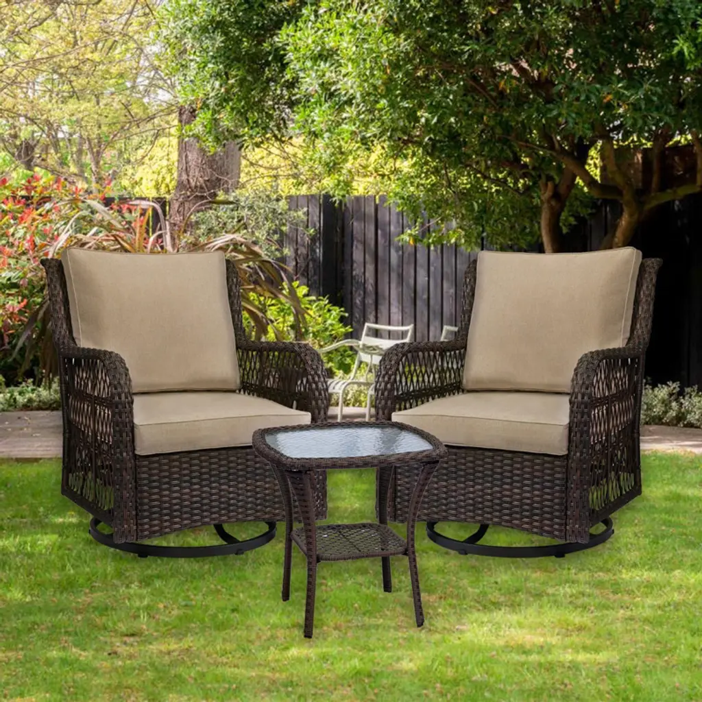 With durable, all-weather resin wicker over a powder-coated steel frame, this rocker chair is built to withstand anything life throws your way. Unlike real wicker which dries out and cracks, resin wicker is flexible and fade-resistant, which means it stays like new season after season. What's more, all-weather wicker doesn't absorb water and also allows for air flow, making it the perfect choice for the poolside! In addition, this rocker chair is virtually maintenance-free and cleaning it is as simple as spraying it down with your garden hose or wiping it with a solution of mild dish soap and water. The rocker chairs even stack for easy, off-season storage. A charming blend of classic elegance and lasting function, this rocker chair is just what you need to unwind in style after a day's work. This beautiful rocker will outlast any simple wicker chair and sits more comfortably too.Features:Steel frame for extra durabilityCrafted to withstand seasons of inclement weatherHose off and wipe cleanComes fully assembled3.5" thick cushionsIncludes: 2 x Rocker Chairs, 1 x End Table, 2 x Chair CushionsSpecifications:Chair Dimensions: 36" H x 28.25" W x 33.5" DChair Weight: 22lbs