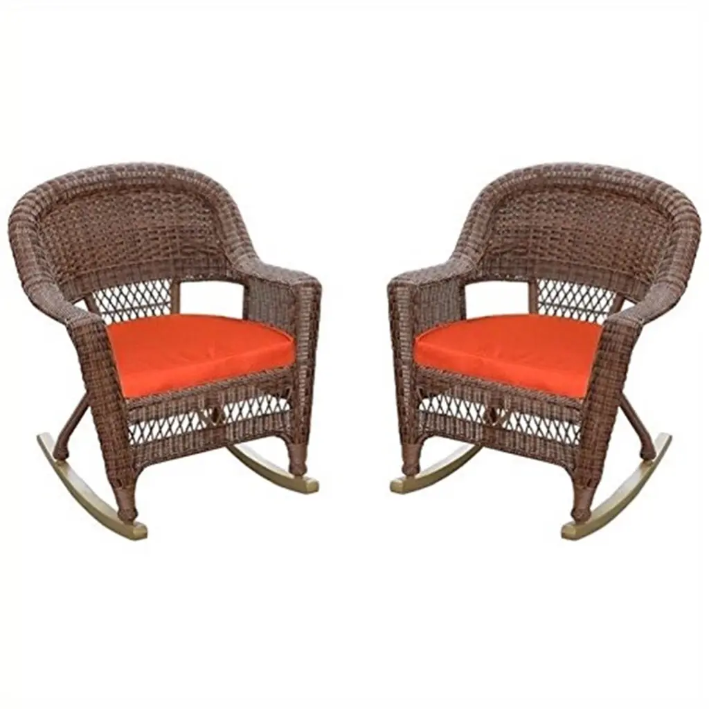 Jeco 3Pc Wicker Rocker Chair Set In Honey With Red Cushion