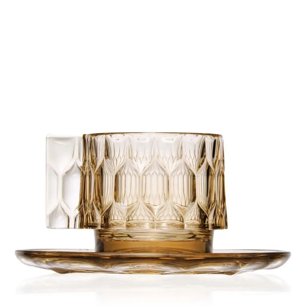 A comprehensive collection of plates, trays, glasses, bowls, carafes, coffee cups and sugar bowls from Kartell. The line's individuality is down to the fact that each model presents a different pattern inspired by the molds that were once used for making jellies. The overlapping sections and colorful juxtapositions create an imaginative yet discreet ensemble that is both creative and sophisticated.