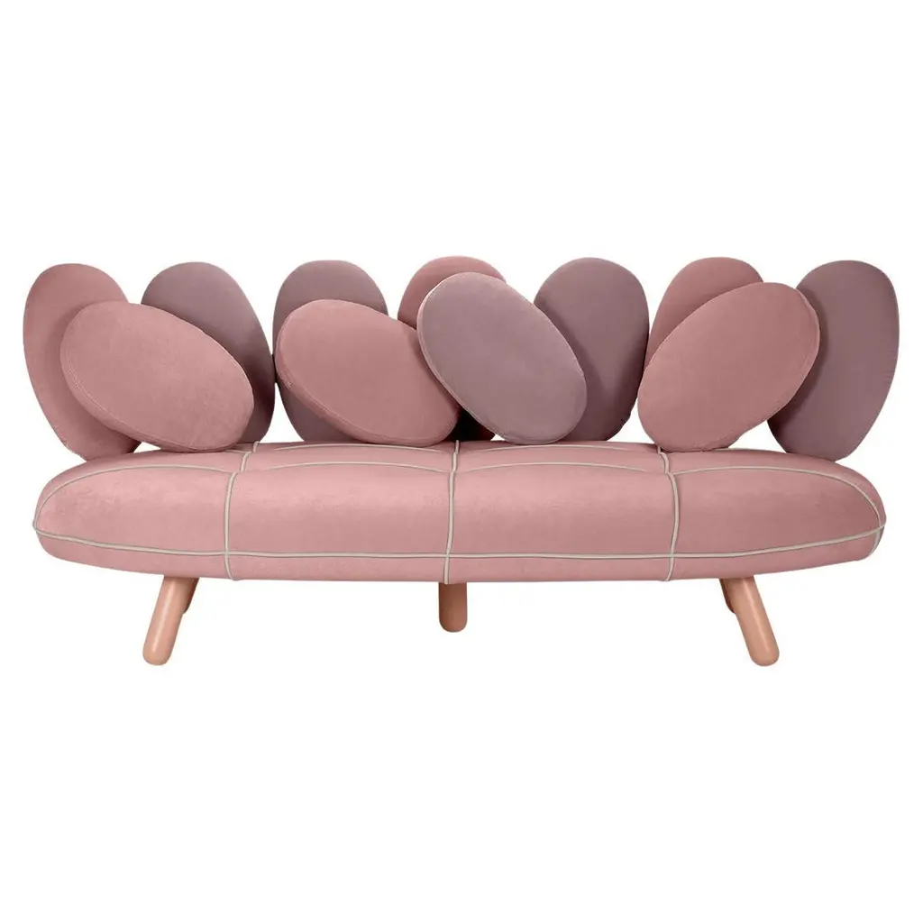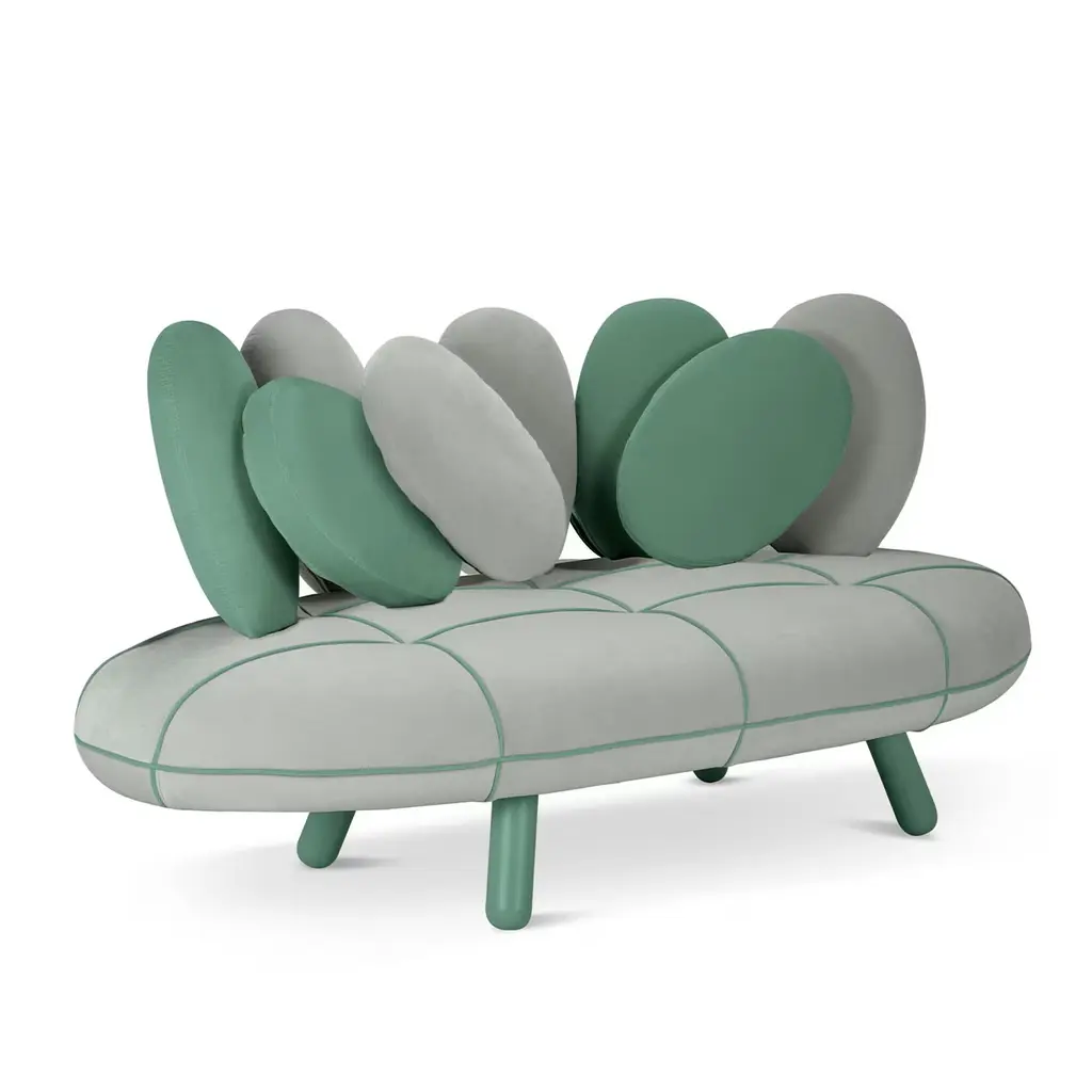 JELLY is a distinctive sofa that engages the senses with its blend of nostalgic charm and futuristic design. Shaped like a whimsical candy, it conveys a sense of joyful playfulness and delight. The sofa is elevated by cylindrical legs, which lift it off the ground and enhance its slender profile. This design choice smooths out its rounded contours, adding to its sleek and streamlined appearance. JELLY’s unique form and vibrant character make it a standout piece in any living space.