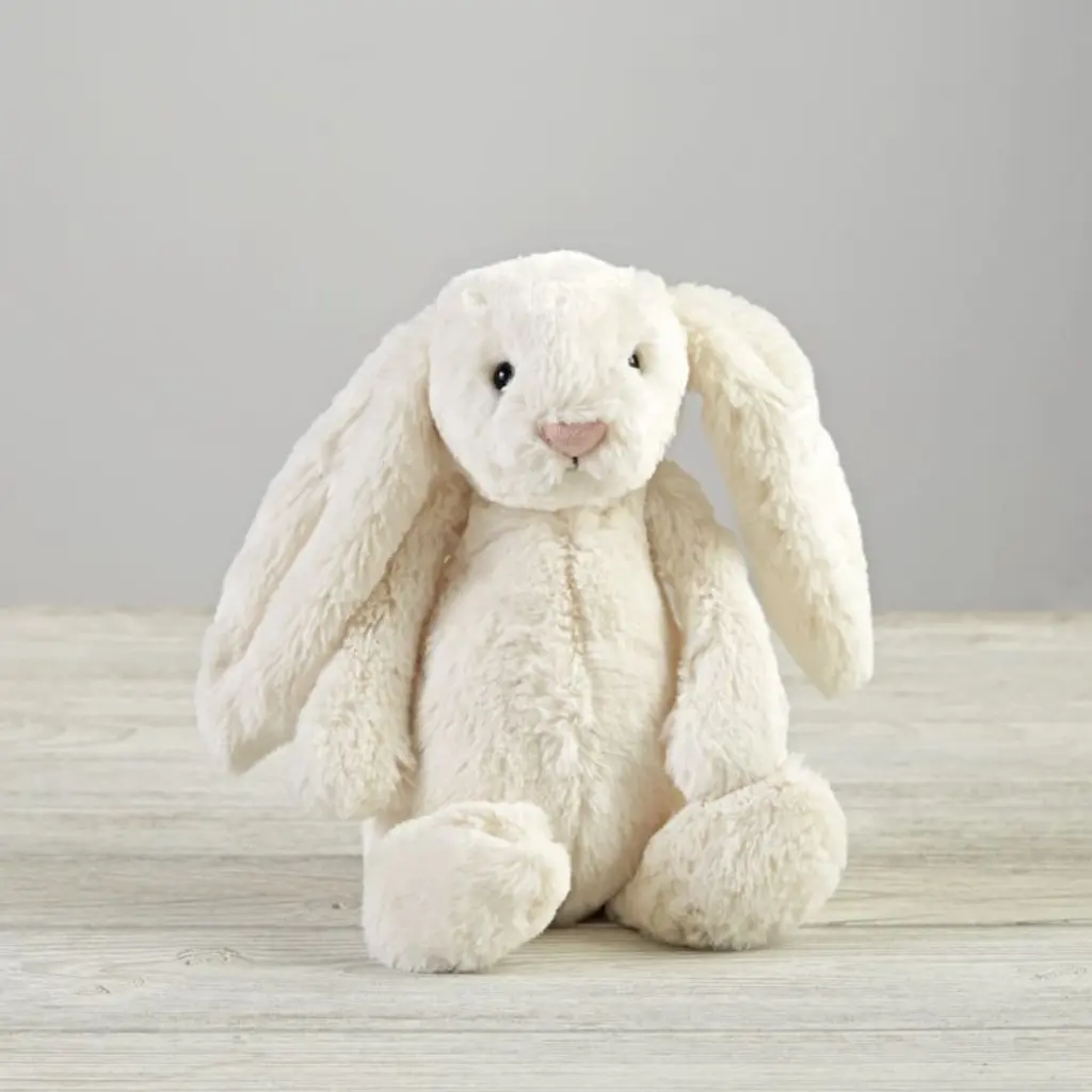 This white plush bunny has lived in the wild long enough. It's ready to move into a home. This bunny is snuggly, cuddly and guaranteed not to hop away from you in the middle of the night.