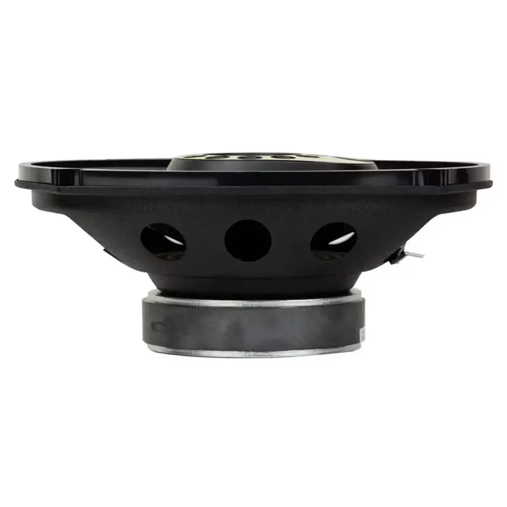 6″ x 9″ Full Range Jensen TRIAX Speakers featuring an injection-molded polypropylene woofer cone, rubber surround, and a 20 mm piezo tweeter. Features: 6″ x 9″ TRIAX design Injection-molded polypropylene woofer cone Nitrile butadiene rubber surround 58mm Mylar® balanced dome midrange 20mm piezo tweeter Grilles included Magnet weight: 26.8 oz Sold in Pairs Specifications: Sensitivity: 89dB Frequency response: 50Hz – 20kHz Nominal impedance: 4 Ohm RMS power: 75 Watts Peak power: 375 Watts Dimensions: Top-mount depth: 3.11″ Bottom-mount depth: 3.56″ Cut-out diameter: 5.59″ x 8.70″ Mounting height: 0.87″ Specifications SPEAKER SIZE: 6" x 9" SPEAKER DESIGN: 3-Way RMS POWER: 75 Watts GRILLES: Yes NOMINAL IMPEDANCE: 4 Ohms SENSITIVITY: 89dB FREQUENCY RESPONSE: 50 Hz ~ 20 kHz TWEETER MATERIAL: Piezo TWEETER SIZE: 20mm MIDRANGE SIZE: 58mm MIDRANGE MATERIAL: Mylar WOOFER MATERIAL: Injection Molded Black Polypropylene SURROUND MATERIAL: Rubber MAGNET SIZE: 26.8 oz CUTOUT DIAMETER: 5.59" x 8.70" TOP-MOUNT DEPTH: 3.11" BOTTOM-MOUNT DEPTH: 3.56" MOUNTING HEIGHT: .87"