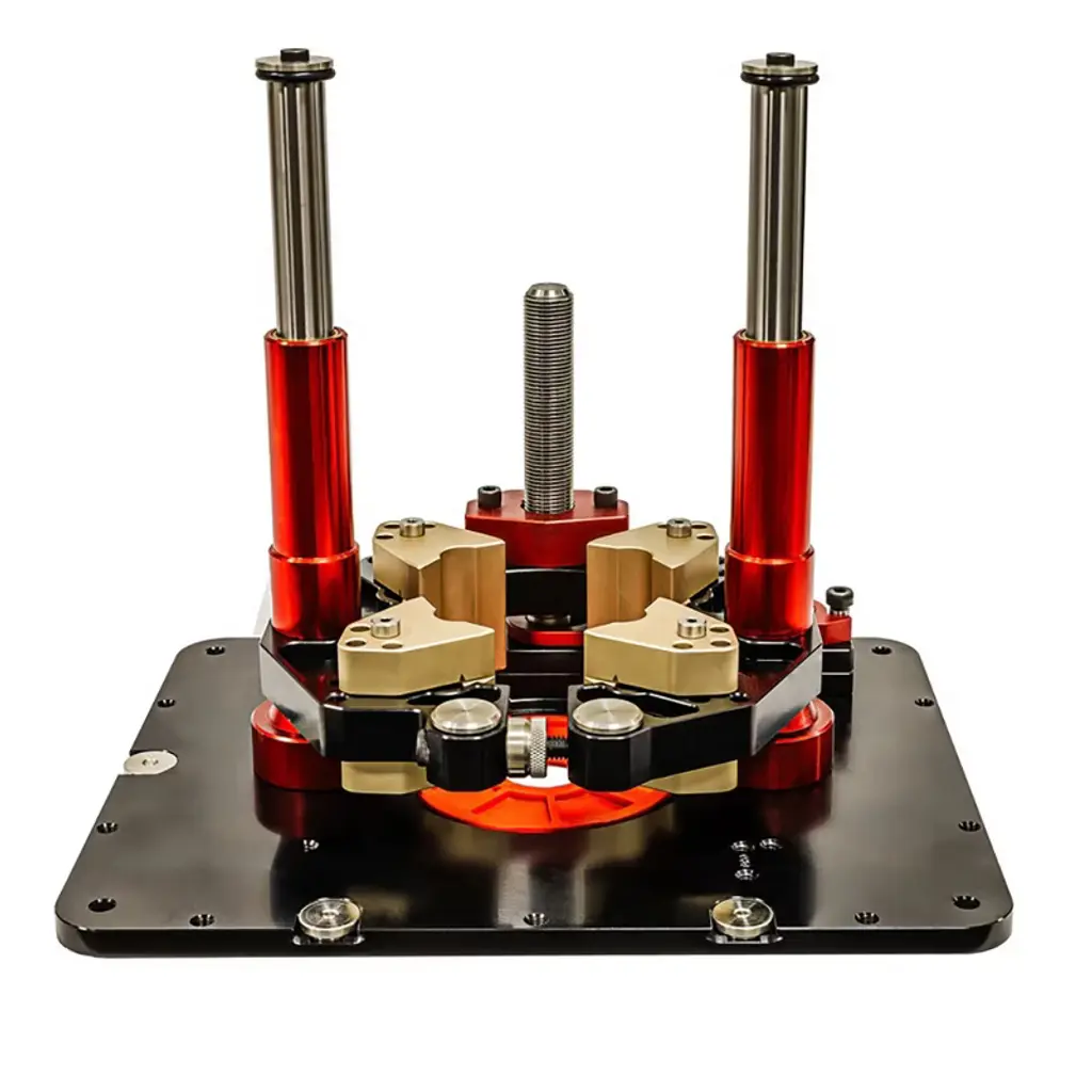 Unleash the full potential of your woodworking skills with the Mast-R-Lift II. Immerse yourself in the world of woodworking where meticulous attention to detail defines excellence. This lift boasts durability and dependability, helping you achieve the height of your craft and enhancing your woodworking experience for years to come. Double Sealed Ball Bearings: Experience super-smooth rotation and unmatched durability, even when handling the heaviest routers. Double sealed ball bearings ensure a lifetime of use without compromising performance. Patented Tension Feature: Eliminate backlash and maintain absolute precision in your routing tasks with our patented tension feature. Built-In Locking Mechanism: Enjoy hassle-free heavy-duty, long-term routing operations with the built-in locking mechanism. Easily accessible from above the table, this feature simplifies height adjustments using the same handle. Universal Compatibility: The Mast-R-Lift II accommodates a wide range of fixed base routers, thanks to its unique adjustable clamping block system. Check our list of compatible routers to find your perfect fit. Hard Anodized Top Plate: The top plate of the Mast-R-Lift II undergoes a premium hard anodizing process, ensuring a thick, abrasion-resistant coating. This engineered surface treatment outperforms standard sulphuric anodizing, providing long-lasting quality. Hydraulic Shaft Mounting: Our lift shafts are hydraulically pressed into a larger diameter mount, enhancing rigidity and durability. This design spreads lateral loads, making the lift capable of withstanding the toughest routing operations. Convenient Bit Changes: Bid farewell to cumbersome wrenches. All bit changes can be performed effortlessly from above the table, saving you time and frustration. Canadian Craftsmanship: Every component of the Mast-R-Lift II is precision CNC machined in Canadian Facility Non-wearing components are anodized for enhanced appearance, corrosion resistance, and added wear resistance. Router Bit Opening & Tab-Loc Insert Rings: Plate opening is 3-1/2". Various sized insert rings are provided to accommodate differing bit sizes. Crank Handle Precision: One full revolution of the crank handle equals 1/16" of adjustment. Top Plate Dimensions: 9 1/4" × 11 3/4" x 3/8” (02120) Experience the ultimate in precision and convenience with the Mast-R-Lift II, a versatile router lift that will elevate your woodworking projects to new heights. Invest in quality, precision, and performance today. INCLUDES 3x Insert Rings (1-3/8", 2" and 2-½") 1x Insert Wrench 1x Crank Handle 10x Stainless Steel set screws with Blue Nylok Patch 4x Mounting Screws