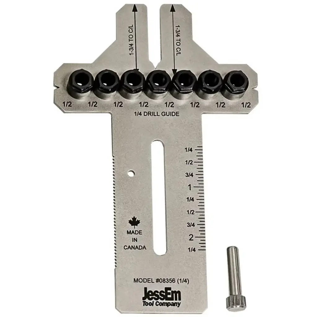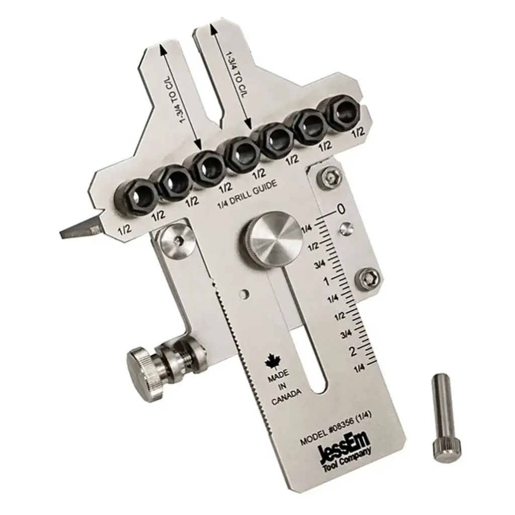 Jessem 08356 1/4" Stainless Steel Dowelling Jig With Angle Guide Precision Woodworking Joinery Tool For Edge, Face, And Corner Dowels