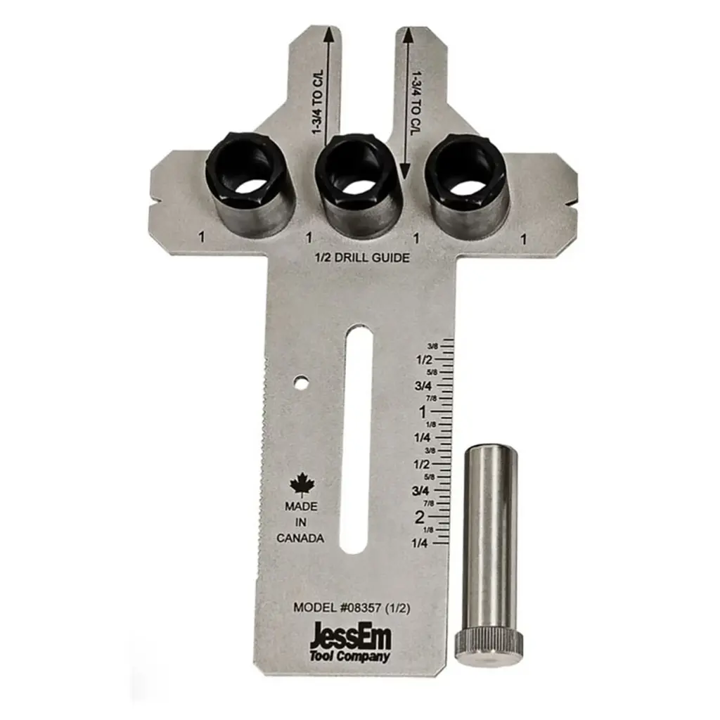 Jessem 08357 1/2" Stainless Steel Dowelling Jig With Angle Guide Precision Woodworking Joinery Tool For Edge, Face, And Corner Dowels