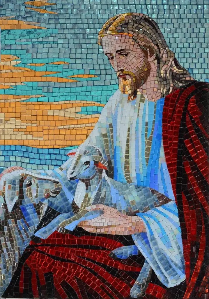 Introducing the Jesus Christ Circle Mosaic Medallion, a stunning representation of faith and artistry that brings the divine into your everyday life. This exquisite piece features a circular design that showcases an intricately crafted mosaic of Jesus Christ, symbolizing love, hope, and spirituality. Handmade from the finest natural stones, this medallion exemplifies the beauty and warmth of natural materials. Each tile is meticulously hand-cut, ensuring that every detail is perfect and adding a unique touch to this one-of-a-kind work of art. The careful selection of stones not only contributes to the aesthetic appeal but also embodies the rich heritage and craftsmanship that has been passed down through generations.Whether displayed in your home, office, or sacred space, the Jesus Christ Circle Mosaic Medallion serves as a constant reminder of your faith and devotion. It makes for a meaningful gift for loved ones, especially during special occasions such as weddings, christenings, or religious celebrations. Its timeless design and profound symbolism will resonate with anyone who values spirituality and connection to God.This medallion is not just a decorative item; it is a piece of art that fits seamlessly into any environment. Allow it to inspire conversation and reflection as it radiates a sense of peace and tranquility. Elevate your space with this extraordinary mosaic medallion and let it serve as a beautiful focal point that draws the eye and uplifts the spirit.Embrace the divine and bring home the Jesus Christ Circle Mosaic Medallion today. Perfect for personal use or as a heartfelt gift, this masterpiece will create an everlasting impression and deepen your connection to faith. Experience the blend of artistry and spirituality with this unique medallion that transforms any area into a sacred sanctuary.