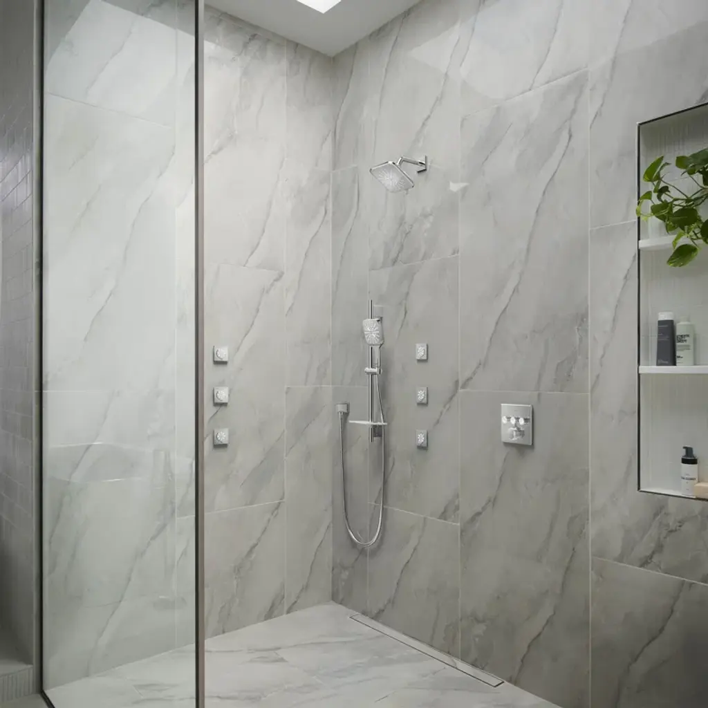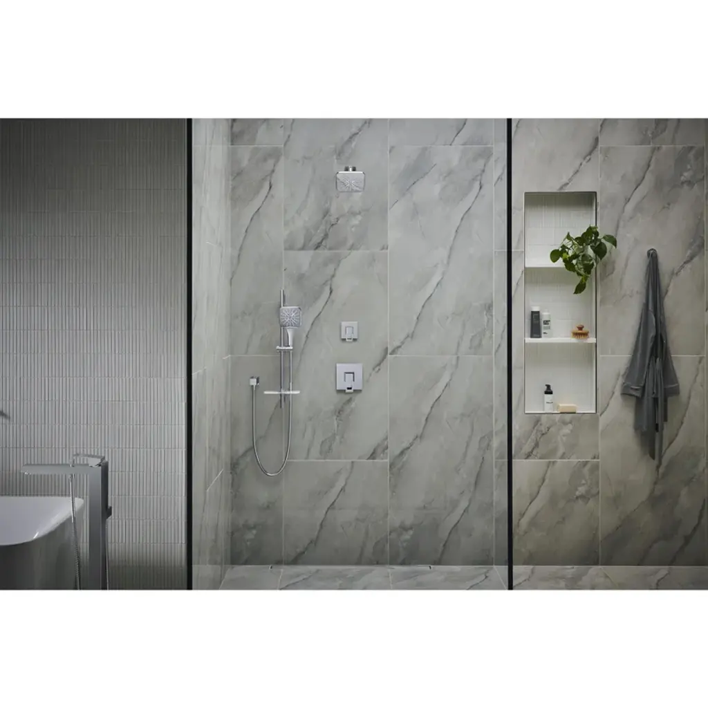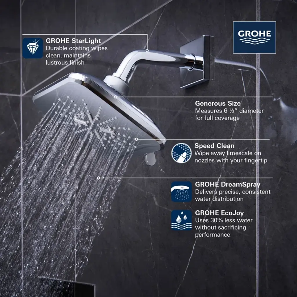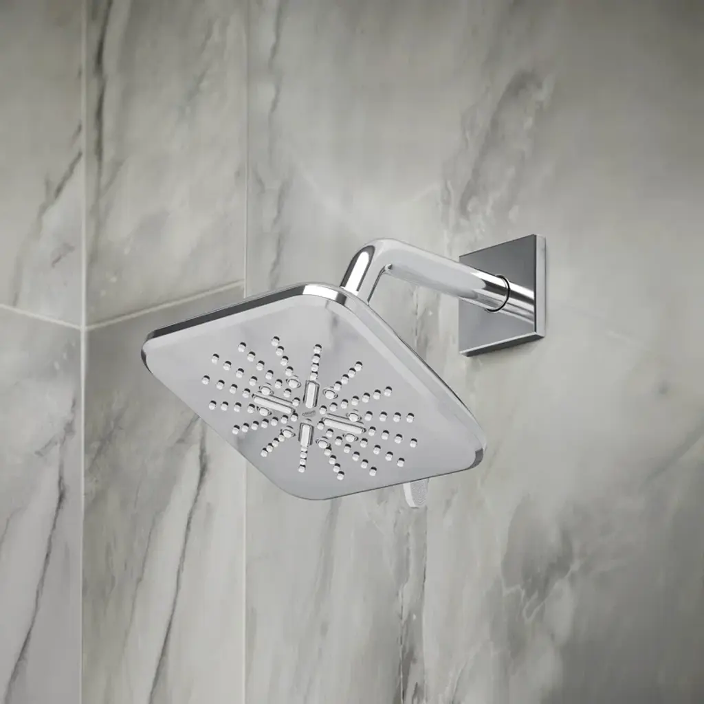 The Grohe rainshower smart active shower head is a sleek, water-saving design engineered in Germany that promises an unparalleled shower experience. This slim shower head features the innovative Grohe smart toggle lever, conveniently located at the bottom of the shower head, to easily alternate between three spray functions: gentle rain, refreshing active massage, and invigorating jet. With Grohe enjoy technology, each spray delivers exceptional enjoyment while using 30% less water than a standard shower head. For added water savings, Grohe drip stop minimizes dripping once the water is turned off.